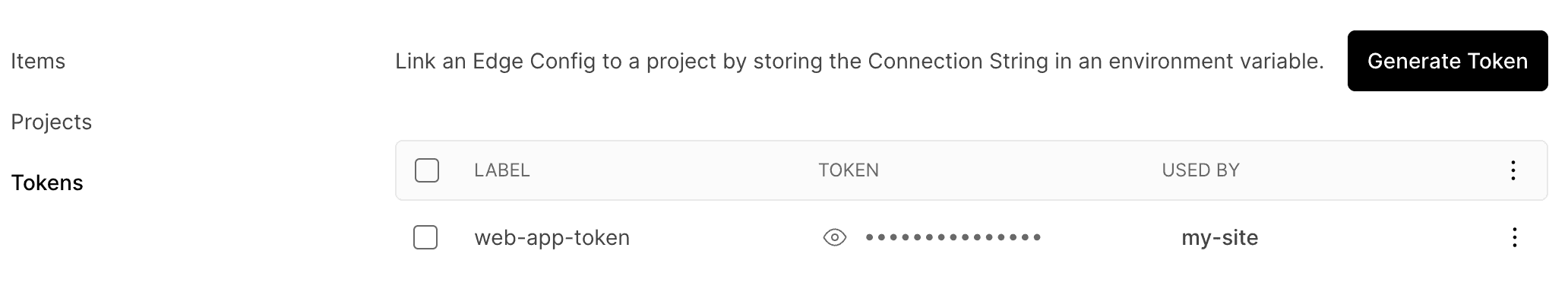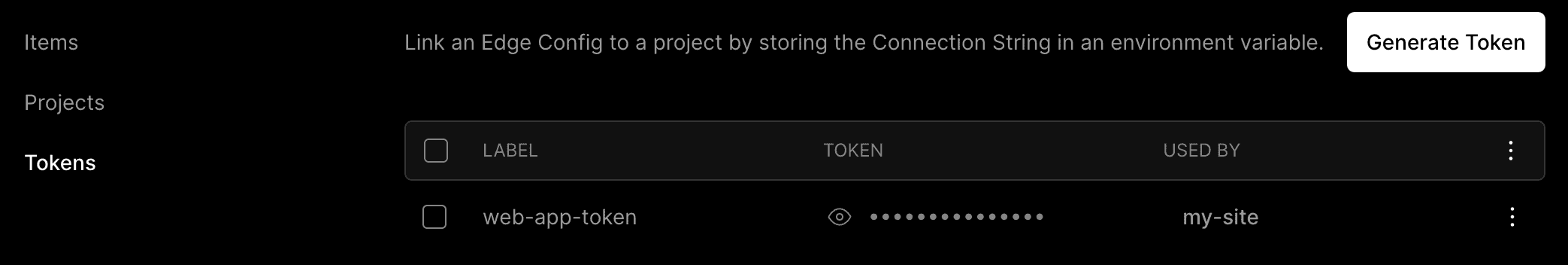 • Generate, copy, and delete tokens associated with this Edge Config