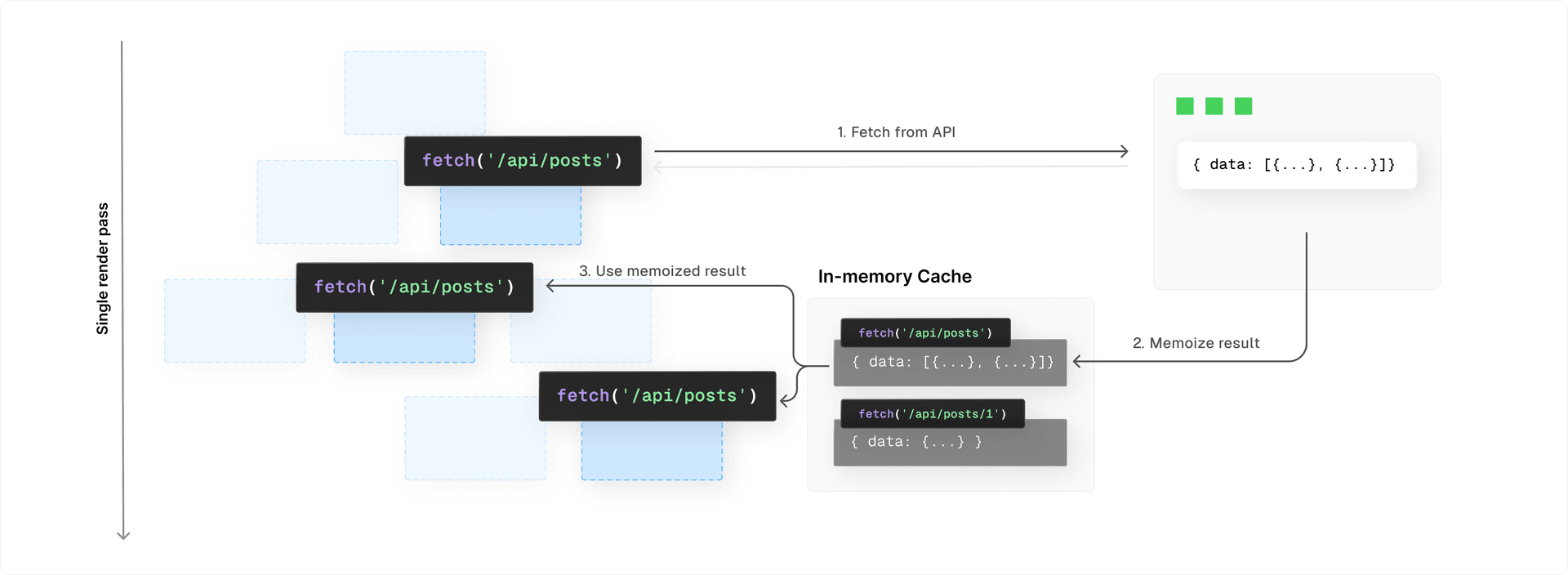 fetchPost(1)fetchPost(1) // Called within same render pass: returns memoized result.