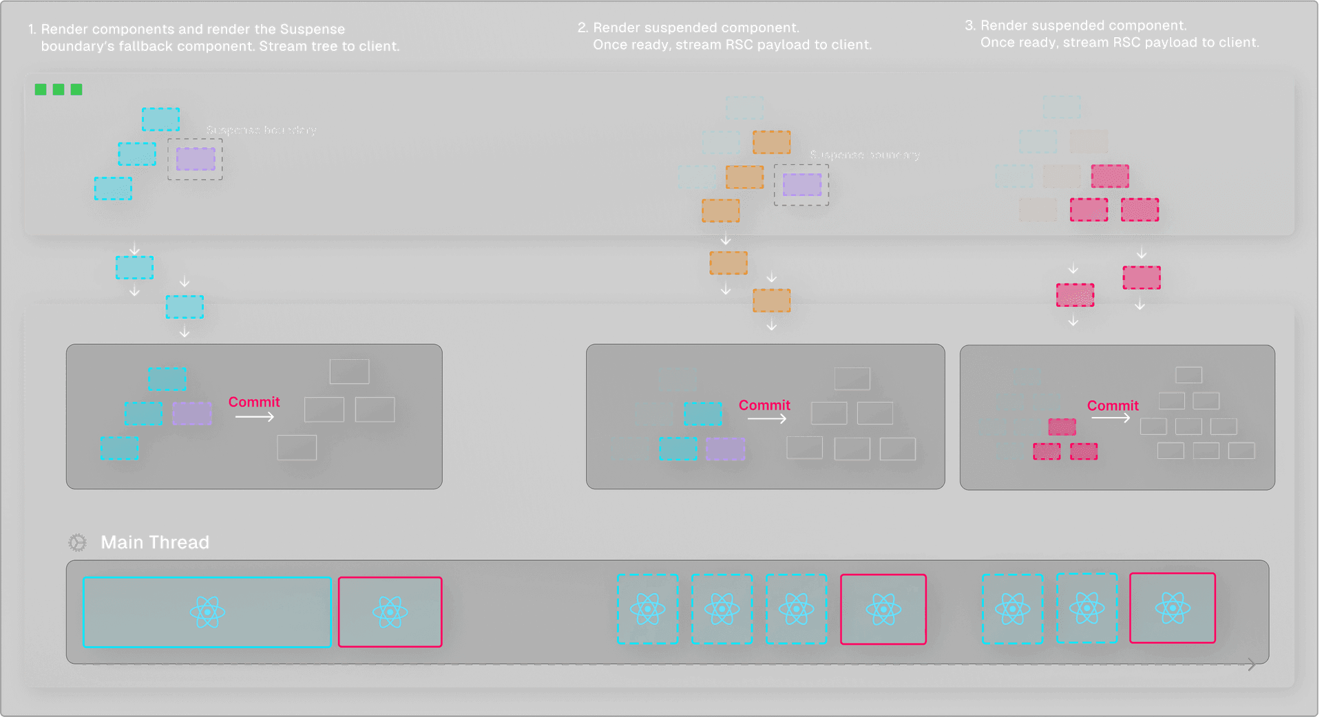 This interruptible rendering mechanism combined with Suspense