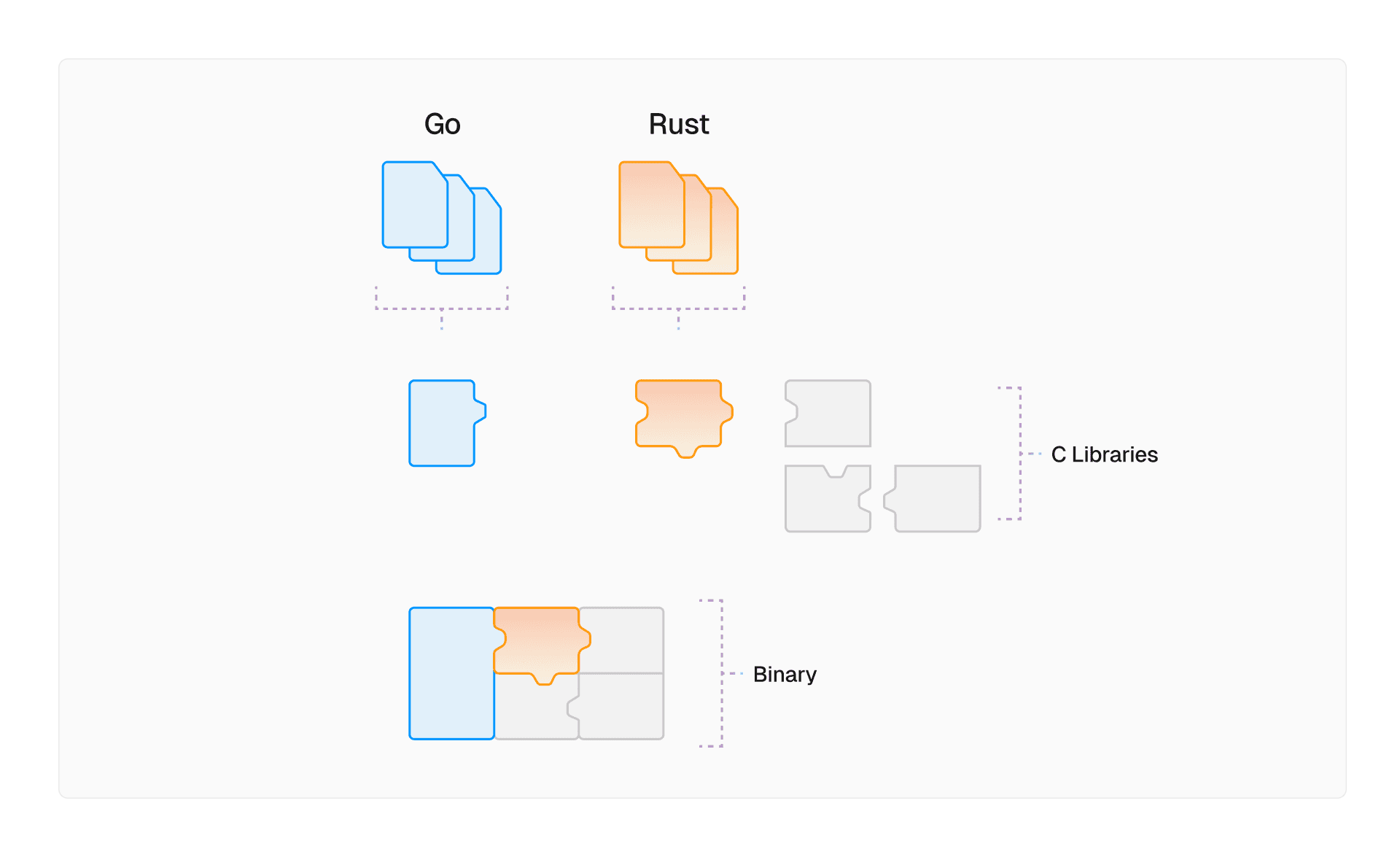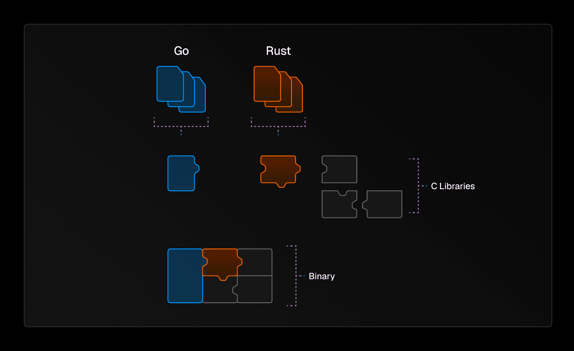 With the Go sandwich, we had a new problem: how can we release a hybrid Go-Rust binary?