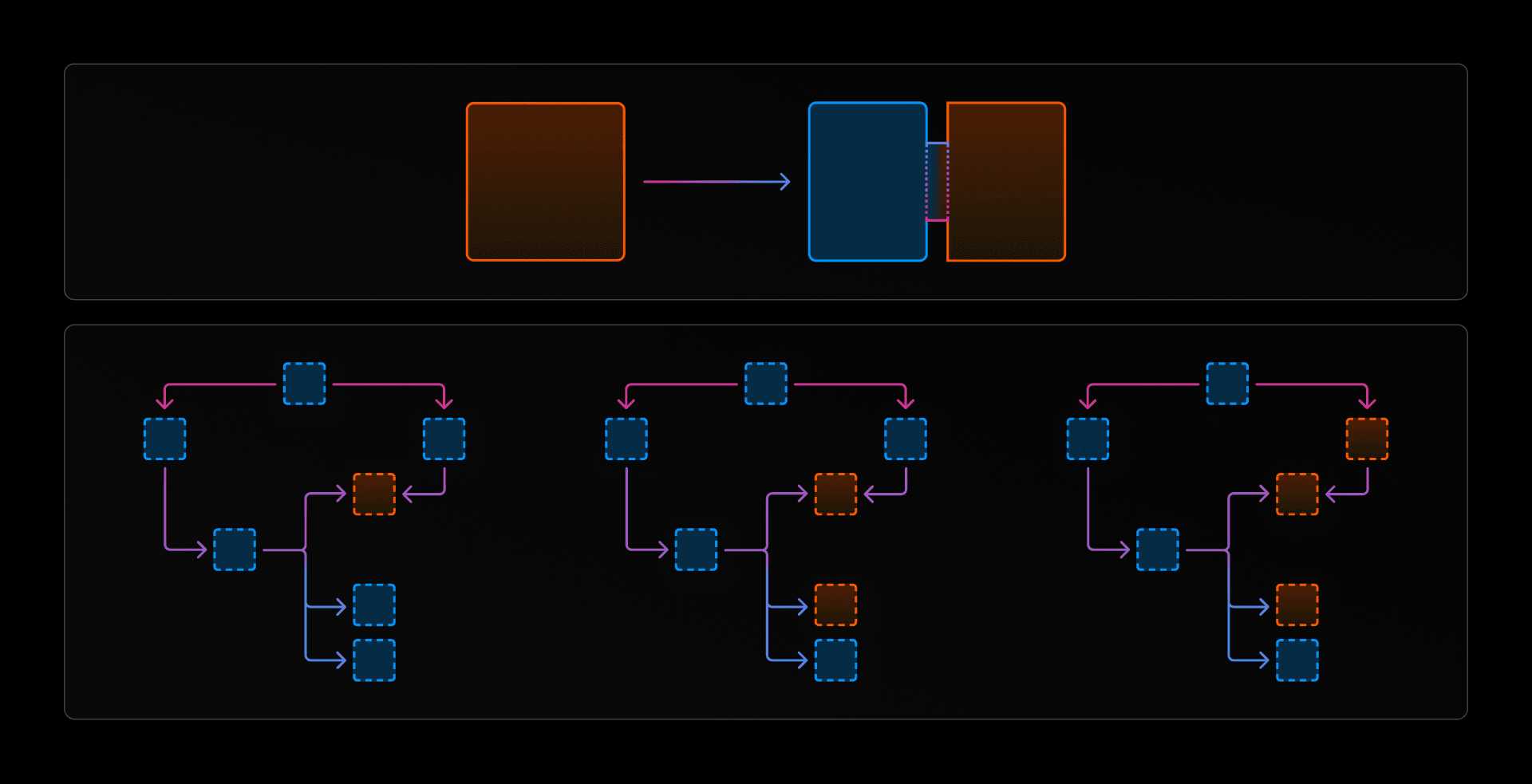 After considering these options, we settled on building what we call the “Rust-Go-Rust sandwich” or the “Go sandwich” for short. It consists of a Rust binary that calls a Go binary, which in turn calls Rust libraries that are statically linked into the Go binary. This allows us to split up the run and prune code between the two languages and port individual dependencies. This way, we could tackle run and prune incrementally, allowing for better testing and debugging through the migration.