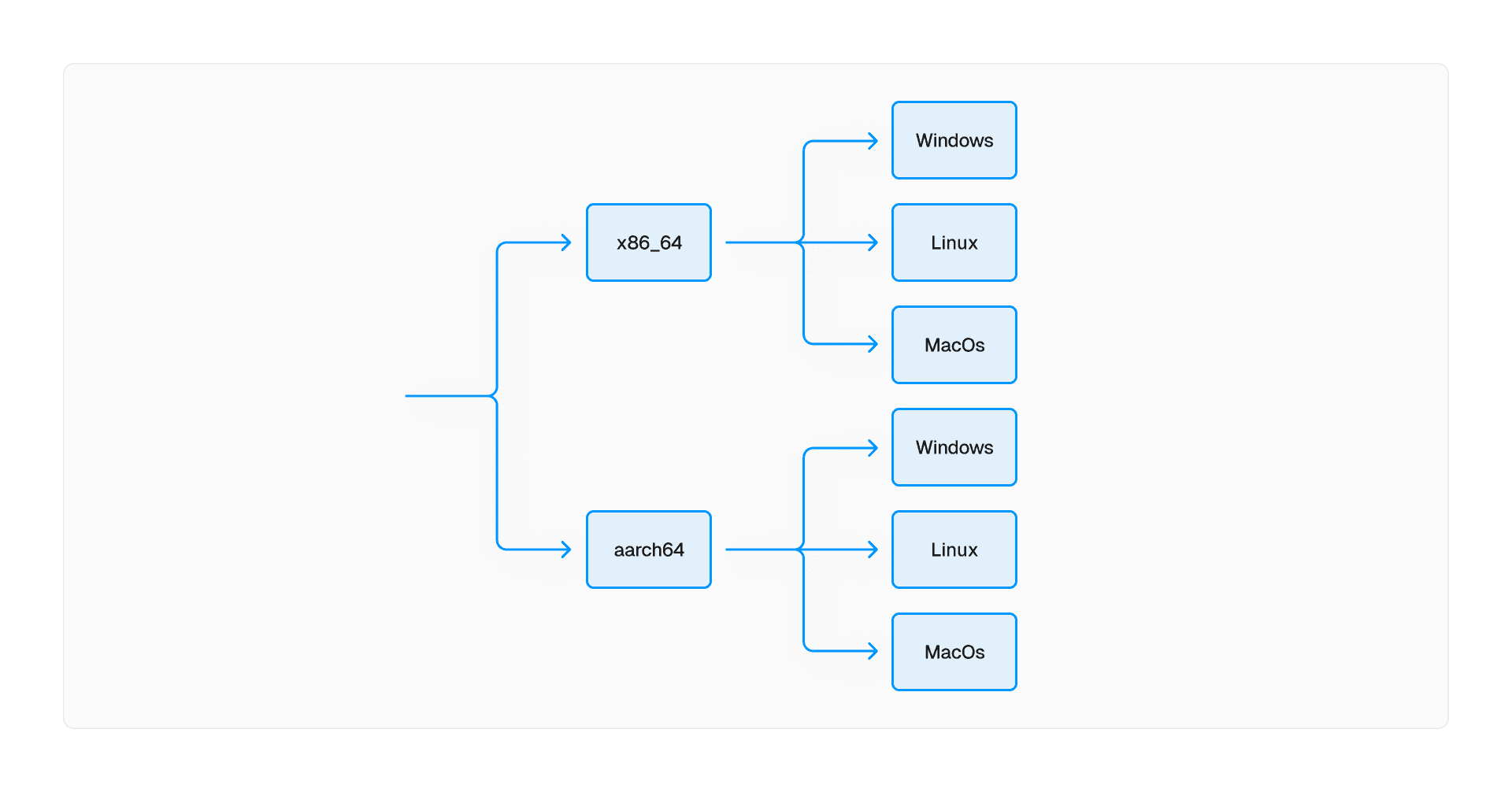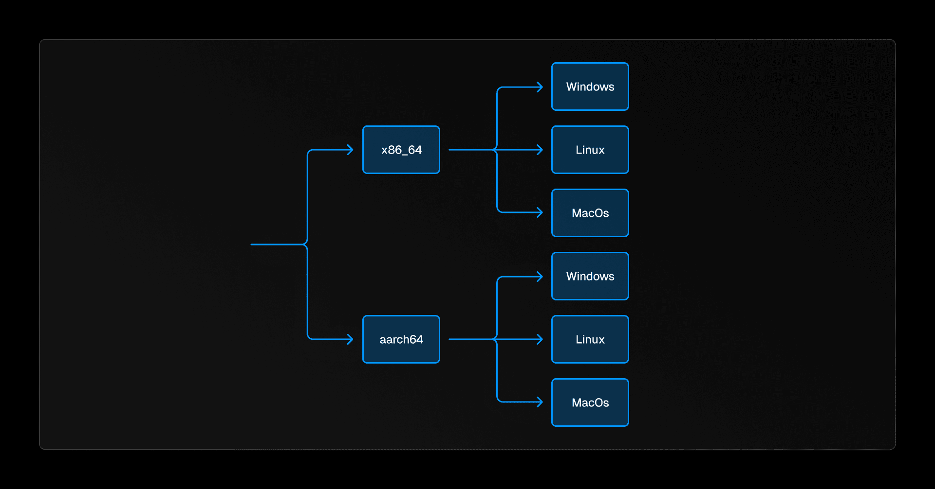 Generally, when you write code and build it, you are doing a native compilation. You're building the code for the operating system and architecture of the computer that you're currently using. This works just fine for local development; you build and immediately run it on your computer. But for releases, this process needs to change. We can’t spin up 6 different machines for each of the targets we support. It would take a really long time, and waste compute resources, and our release pipeline is on GitHub Actions which does not support aarch64 anyway.