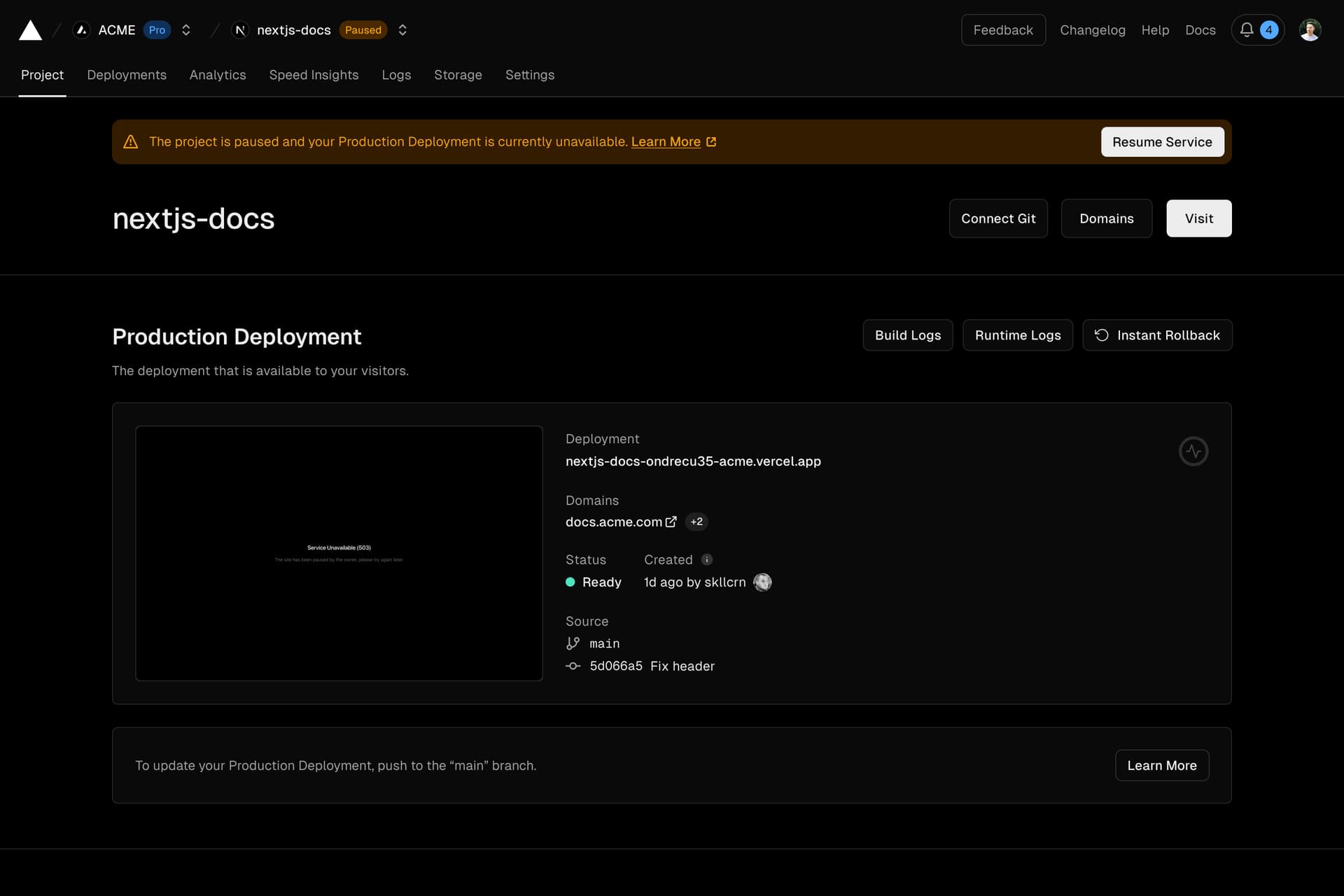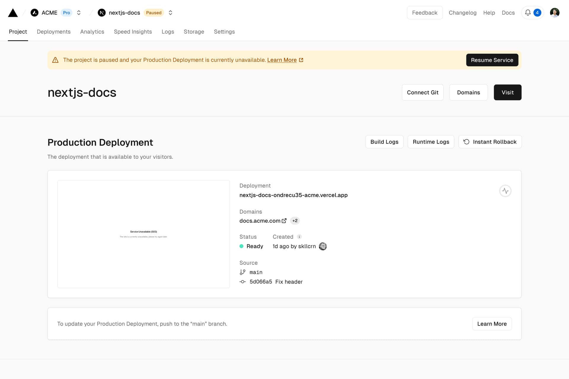 On top of the default usage notifications through email or in-product, the addition of flexible spend notifications and our Pause API allows you to have complete confidence in your Vercel project. You can either automatically pause your projects when the spend amount is reached, our use a webhook to call the API programmatically.