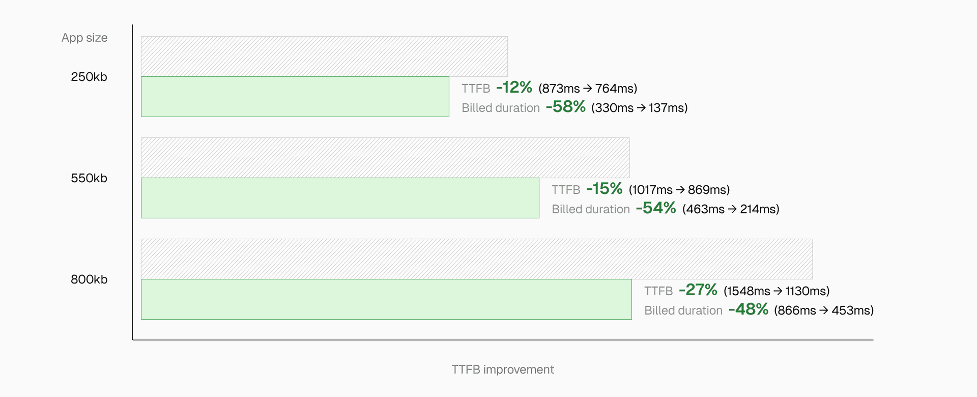 When cold starts do occur, bytecode caching makes them significantly faster. JavaScript must be parsed and compiled into bytecode before execution. This compilation step is consistently one of the slowest parts of cold starts.