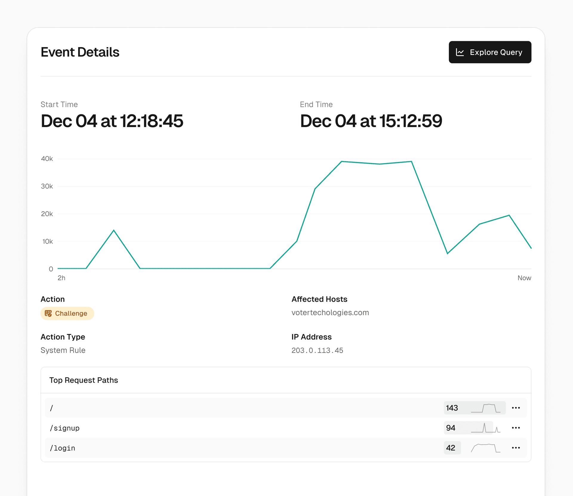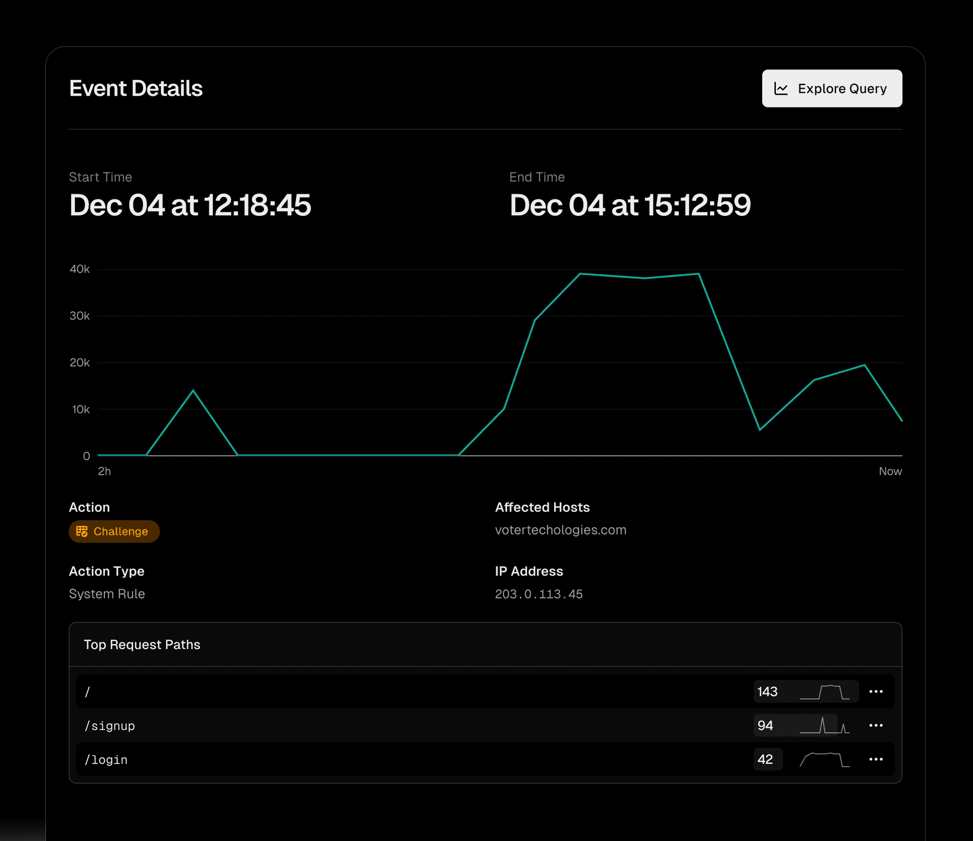 The new Traffic page focuses entirely on understanding activity across your site. You can now drill down into the detection signals that you care about the most, and filter those signals based on specific mitigation actions on the traffic tab. These updates make it easier to spot patterns or anomalies before they become problems.