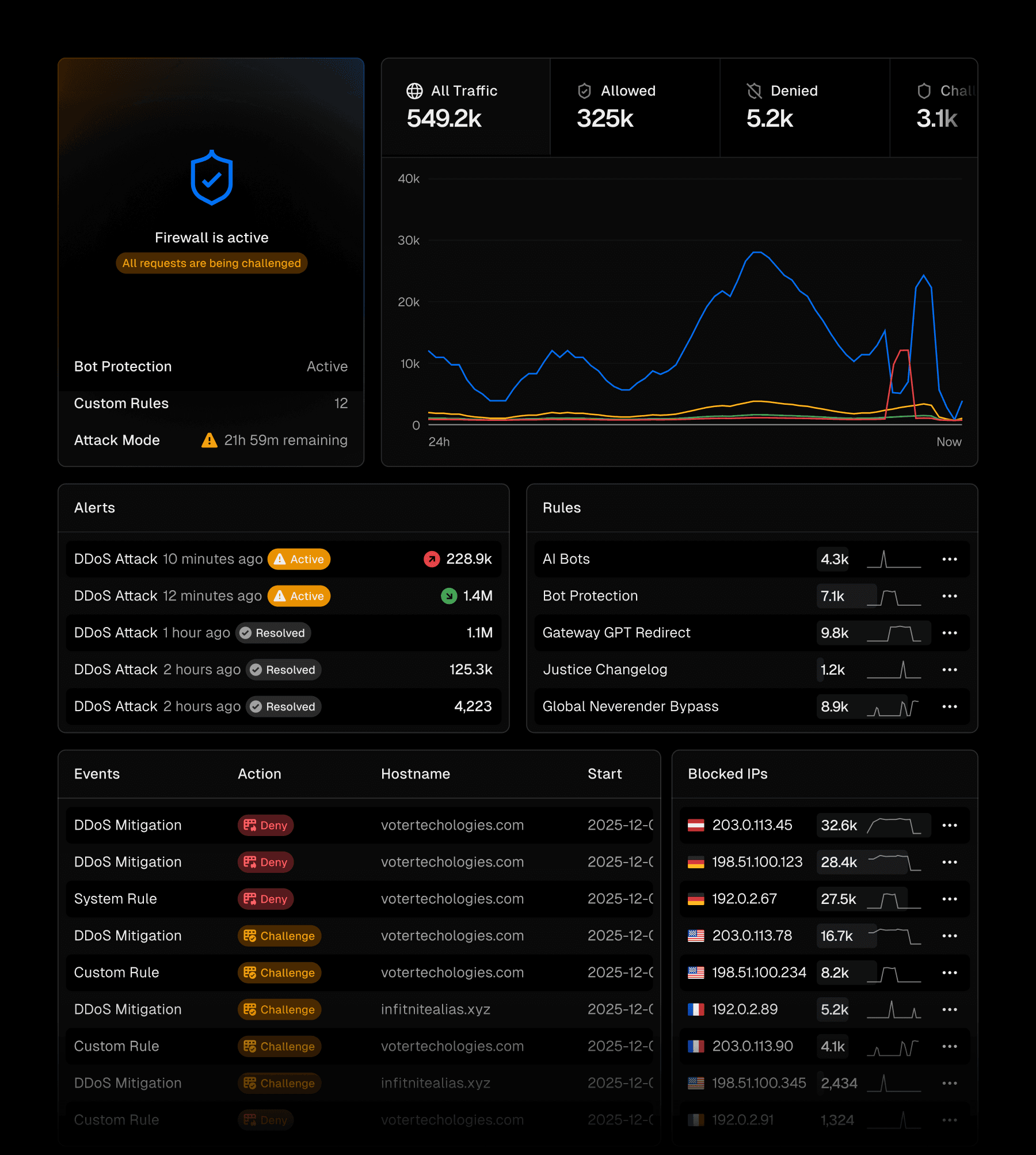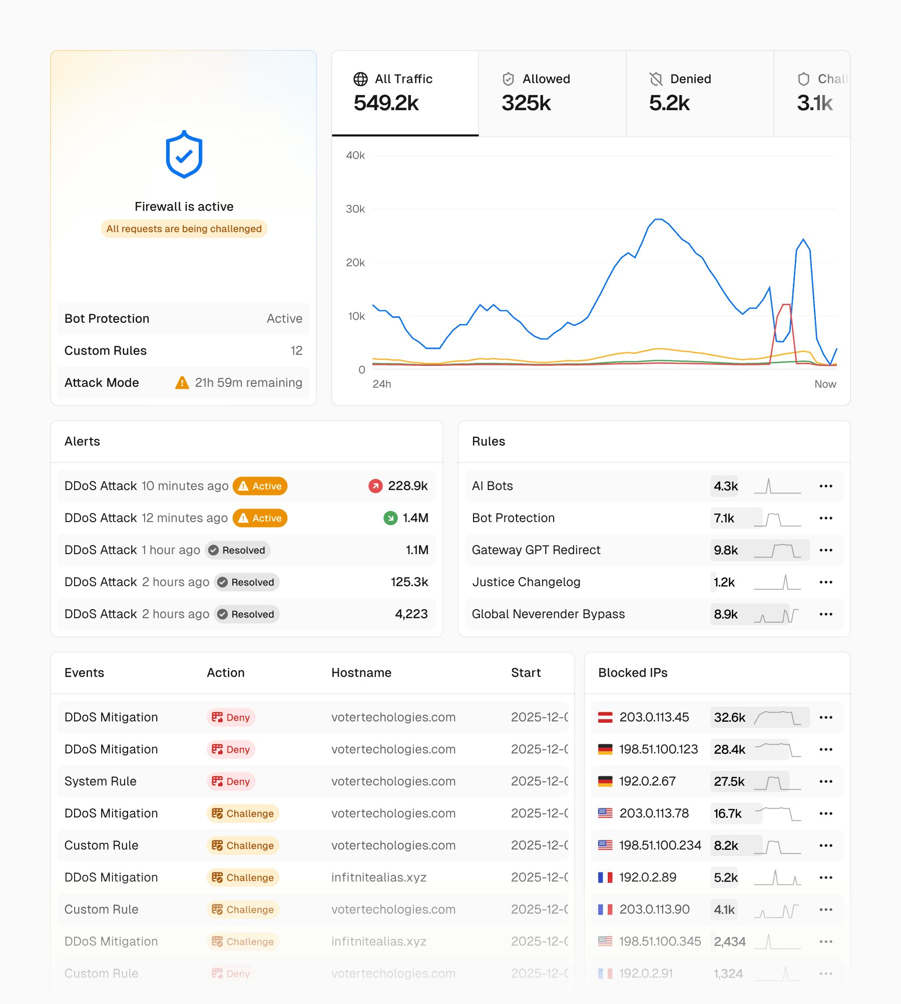 That's why we've redesigned the Vercel Firewall experience from the ground up. The new UI helps you see more, do more, and feel confident in your app's resilience to attacks.