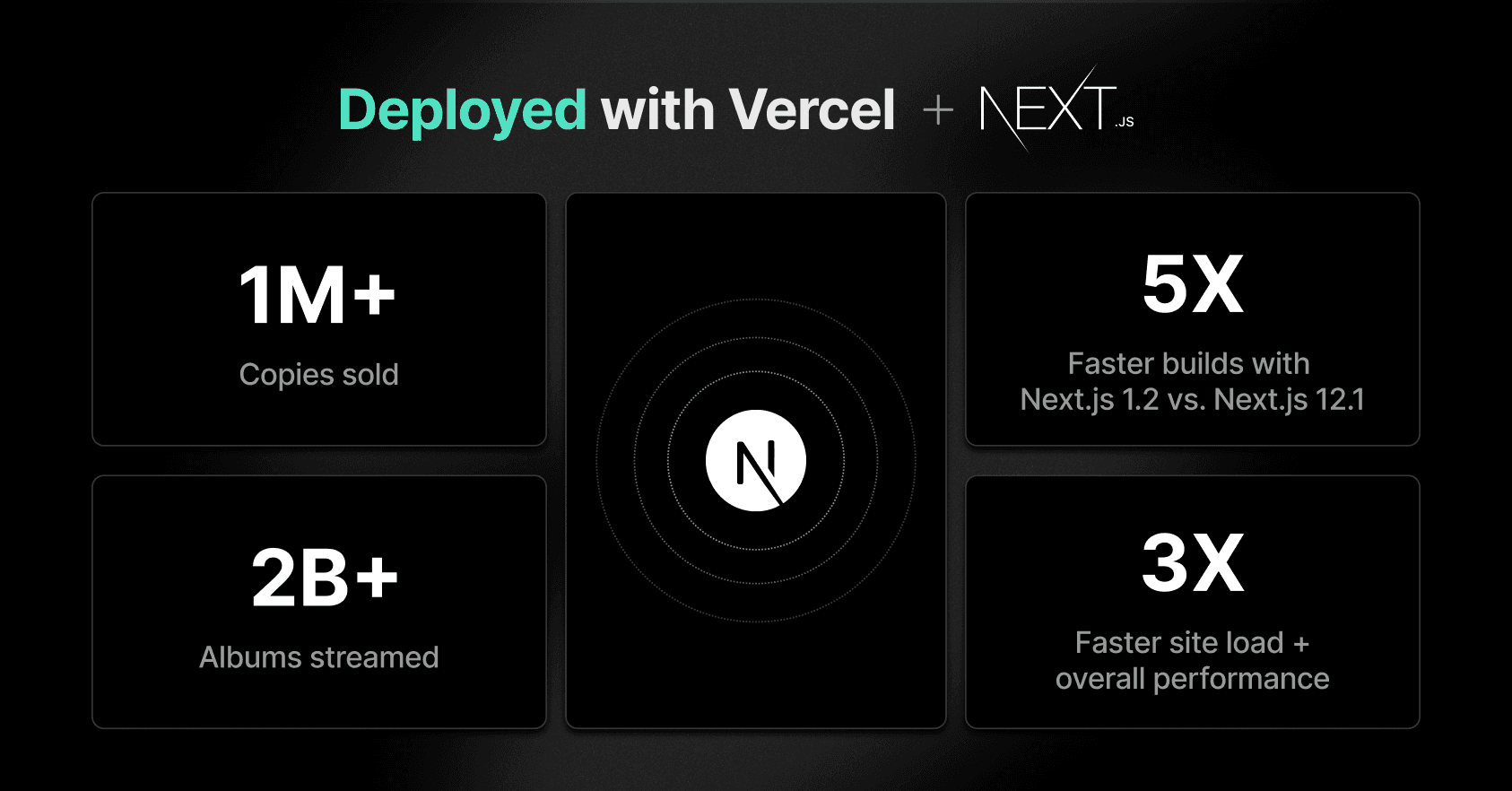 By leveraging the power of Vercel and Next.js, Integral and SymphonyOS are shifting the way artists build their own businesses and interact with their communities. Artists can create at the moment of inspiration, and build the digital experience that augments their music.
