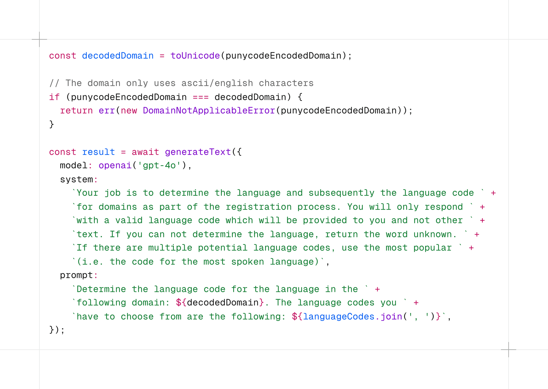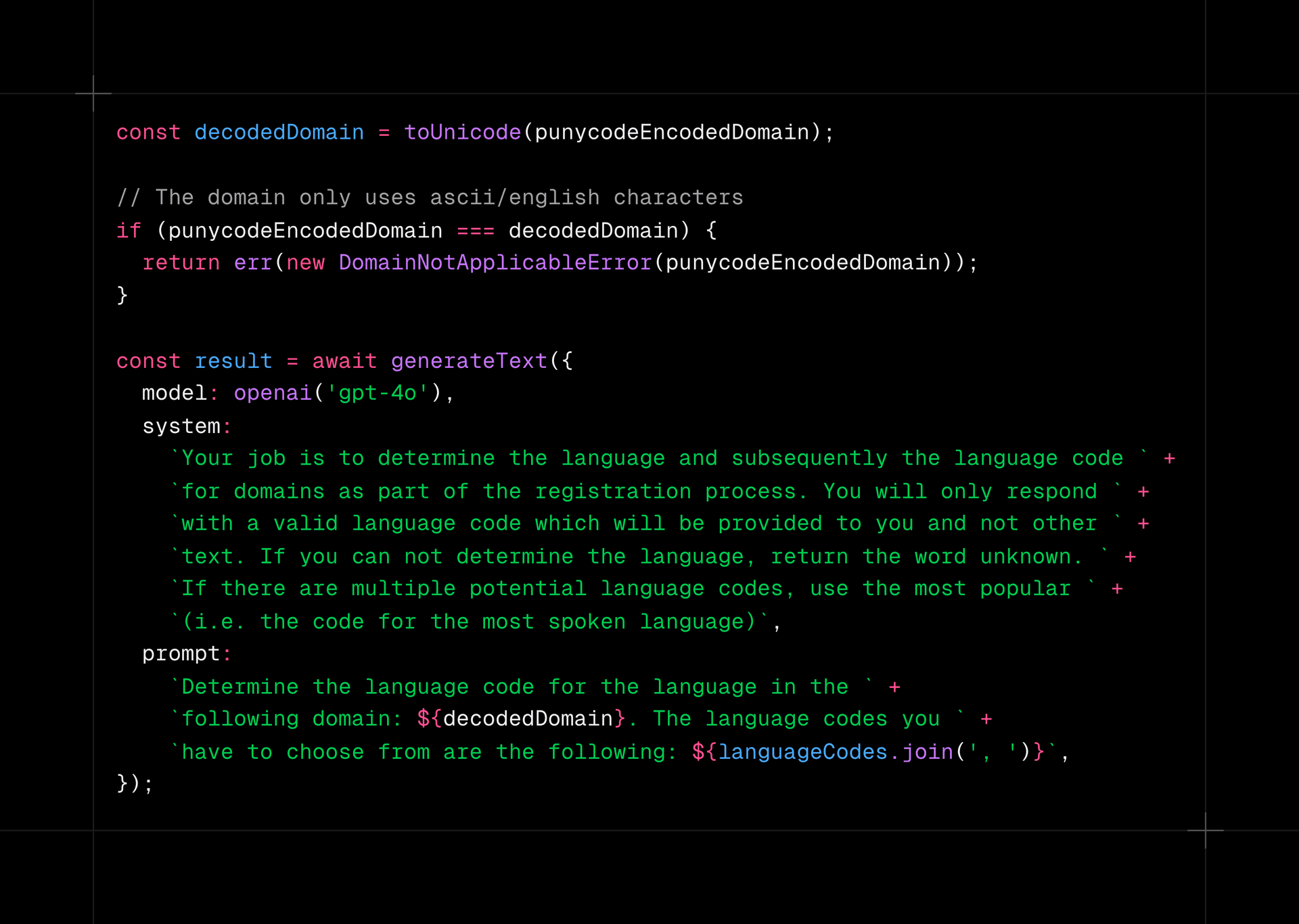 Turning to AI to solve complex problems is becoming second nature. Thanks to the AI SDK, our system correctly handles Punycode domains with the appropriate language codes, we've removed a significant barrier for our international users and enhanced the overall functionality of our platform.