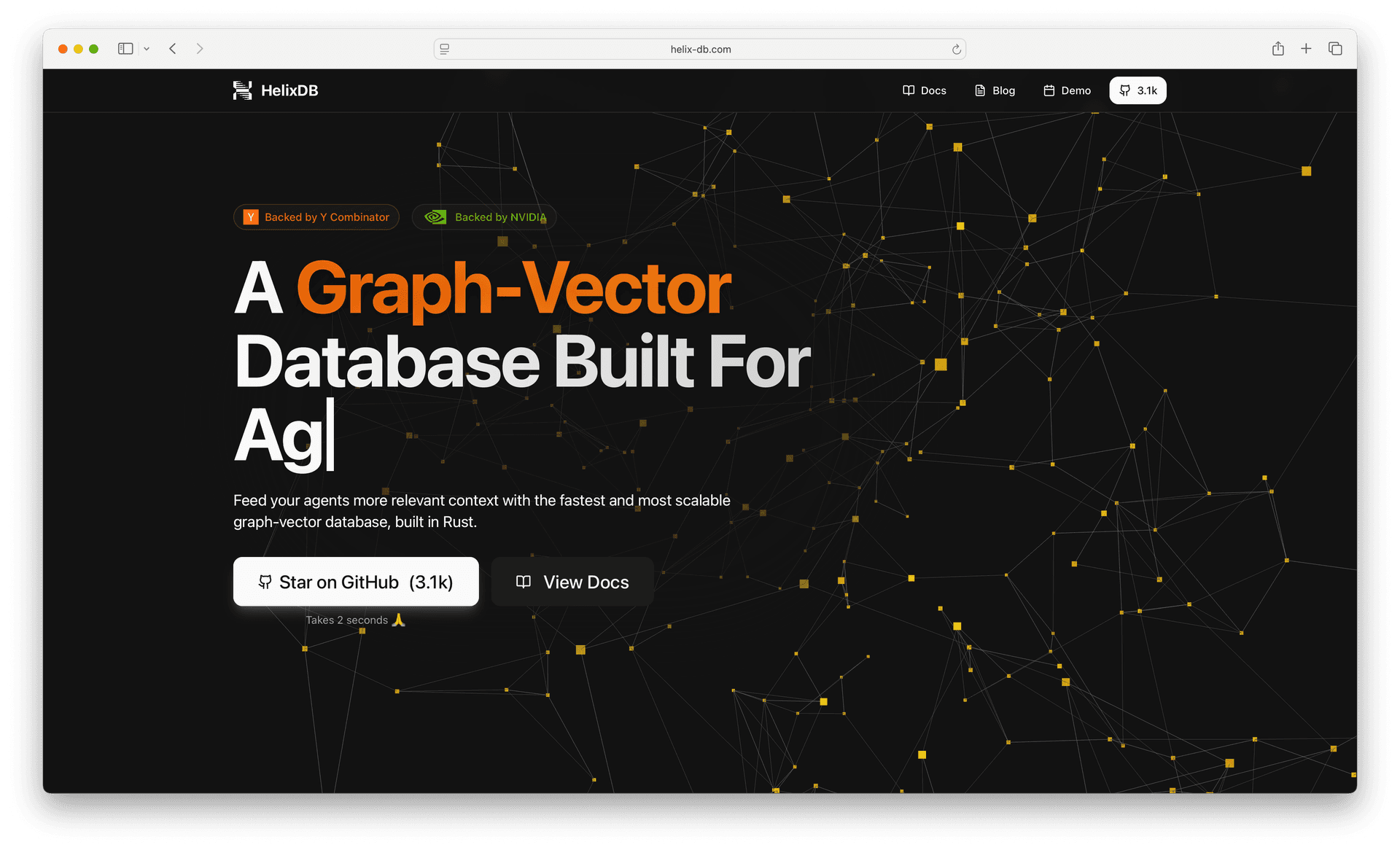 HelixDB is a Rust-built graph-vector database designed to give developers a fast, simple, and scalable backend for AI applications. With 1,900+ commits, 13 contributors, a 300+ member community, and millions of queries run monthly, it’s become a popular choice for building chatbots, AI agents, and domain-specific applications that demand strong developer experience and high performance.