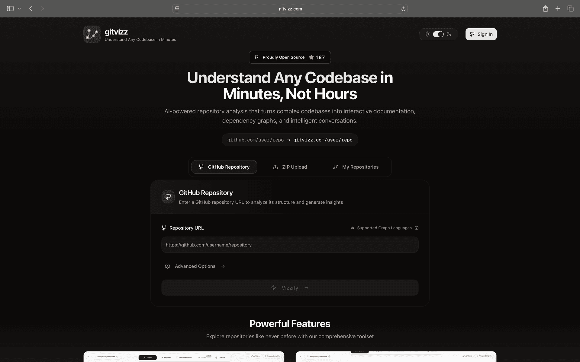 Gitvizz instantly transforms any GitHub repository into an interactive visual graph, helping developers understand large codebases by mapping how files, functions, and modules connect. The project has already gained strong early traction with 100+ GitHub stars, 200+ active users, and a growing community drawn to its powerful graph engine and intuitive code-comprehension experience.