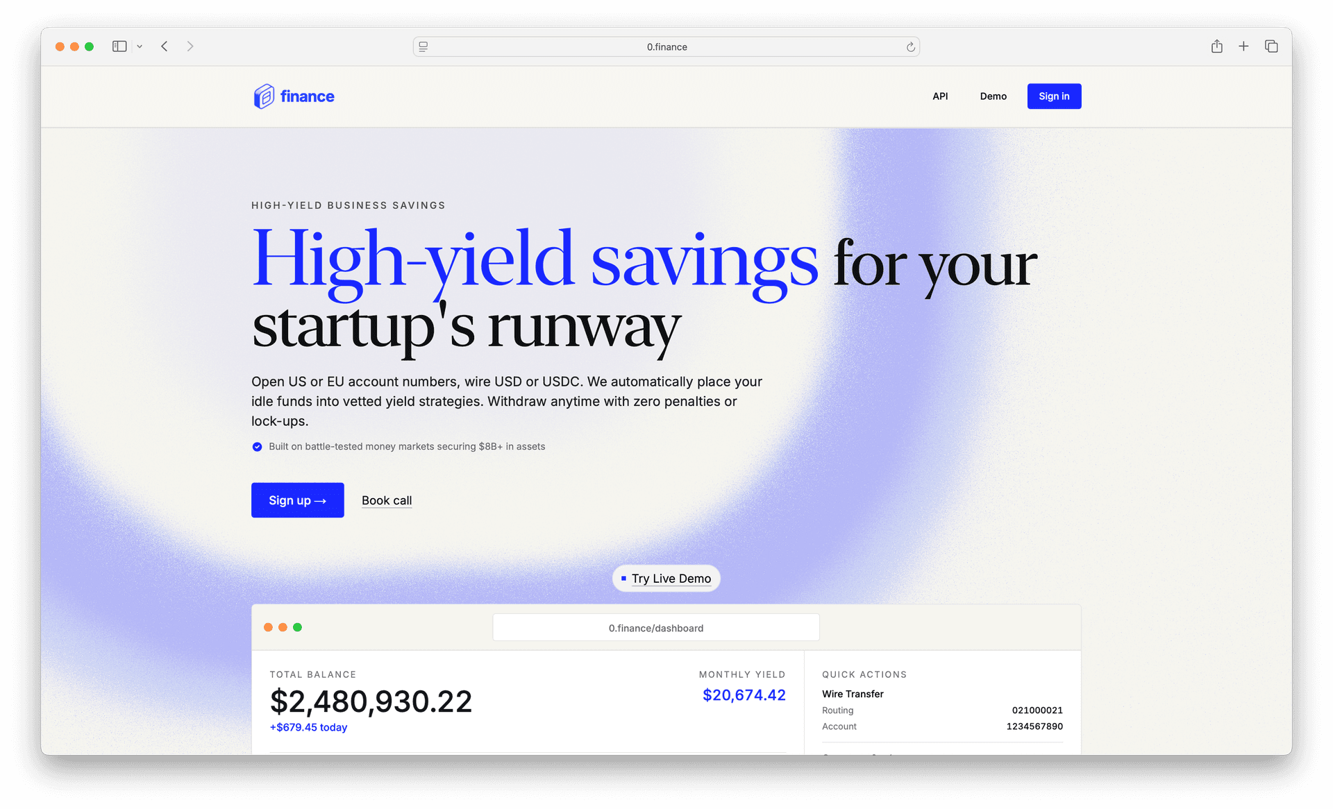 0 Finance is building the first fully open source, forkable business savings account; letting companies send and receive money like a traditional bank while earning higher on-chain yield. The project ships updates daily and has already attracted strong early interest, including $2M in LOIs from startups.