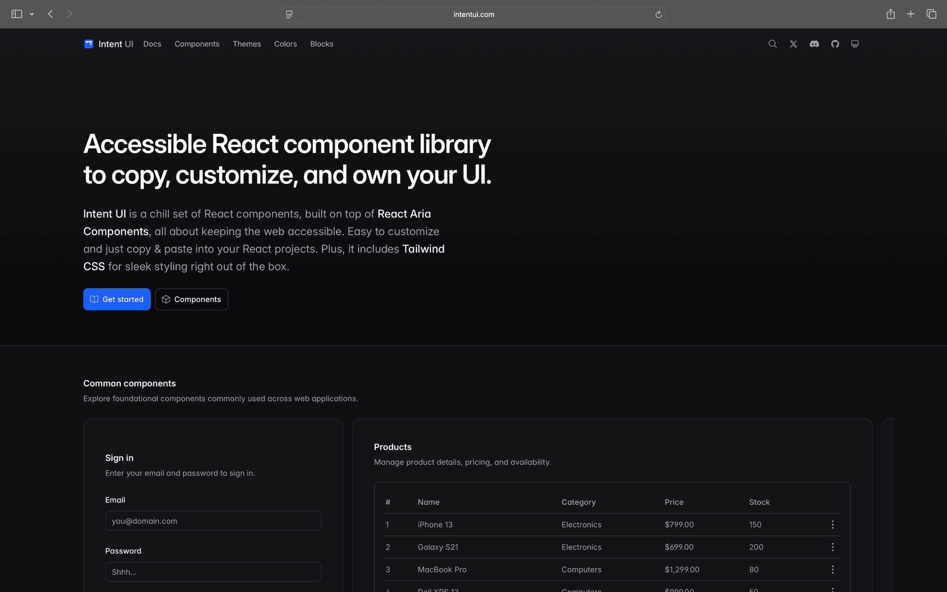 Intent UI is an accessible, copy-and-paste friendly set of React components built on top of React Aria Components, with TailwindCSS baked in for clean, customizable styling. It’s designed to make building accessible, well-styled interfaces fast, simple, and developer friendly.