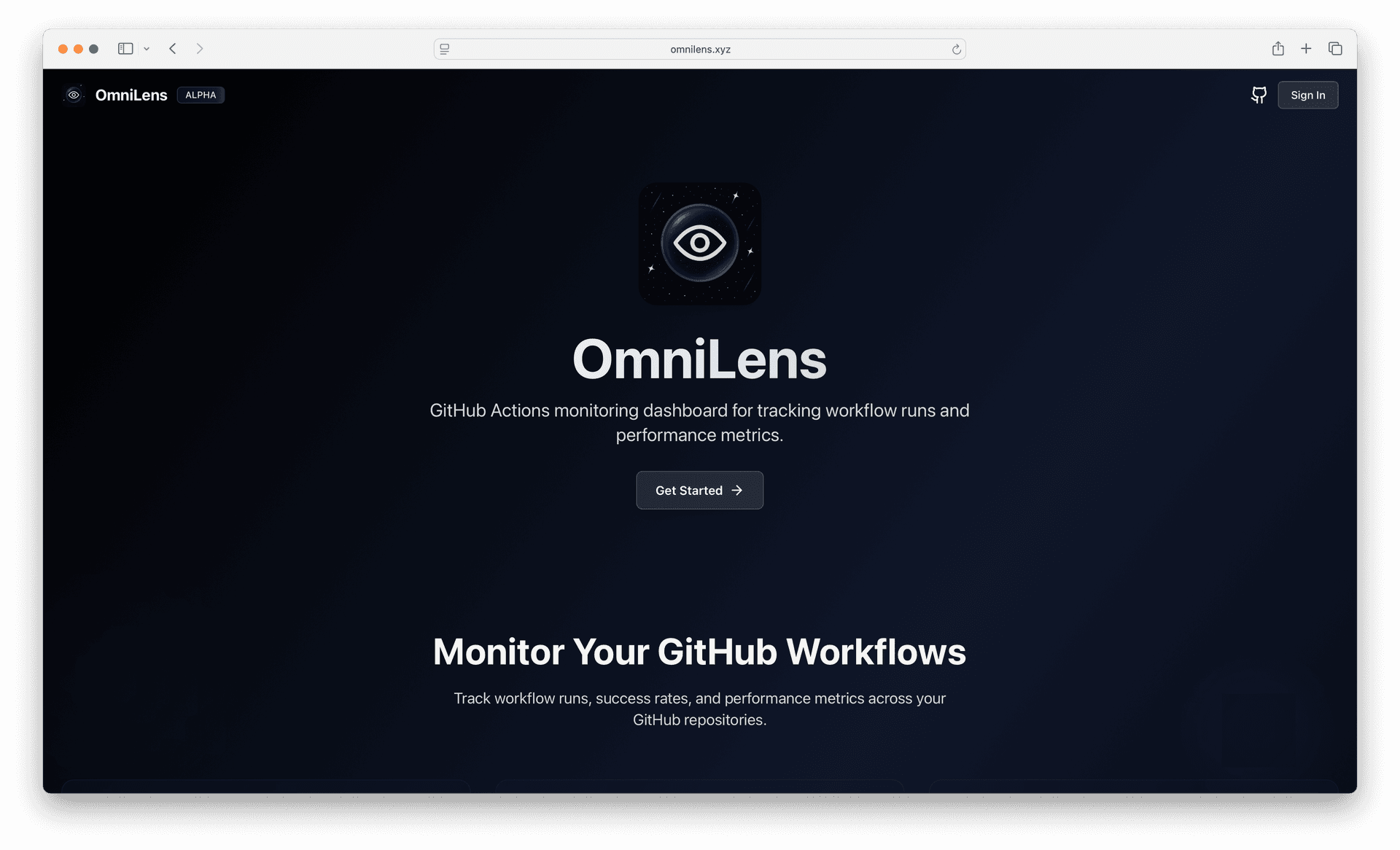 OmniLens is a self-hosted monitoring dashboard that gives teams clear, actionable visibility into their GitHub Actions workflows—surfacing failures, performance trends, and CI/CD bottlenecks in one place. Built on a modern TypeScript + Bun stack, it stands out as a purpose-built, developer-friendly observability tool focused entirely on GitHub Actions, offering validated CI metrics and repository health insights without the complexity of generic monitoring stacks.