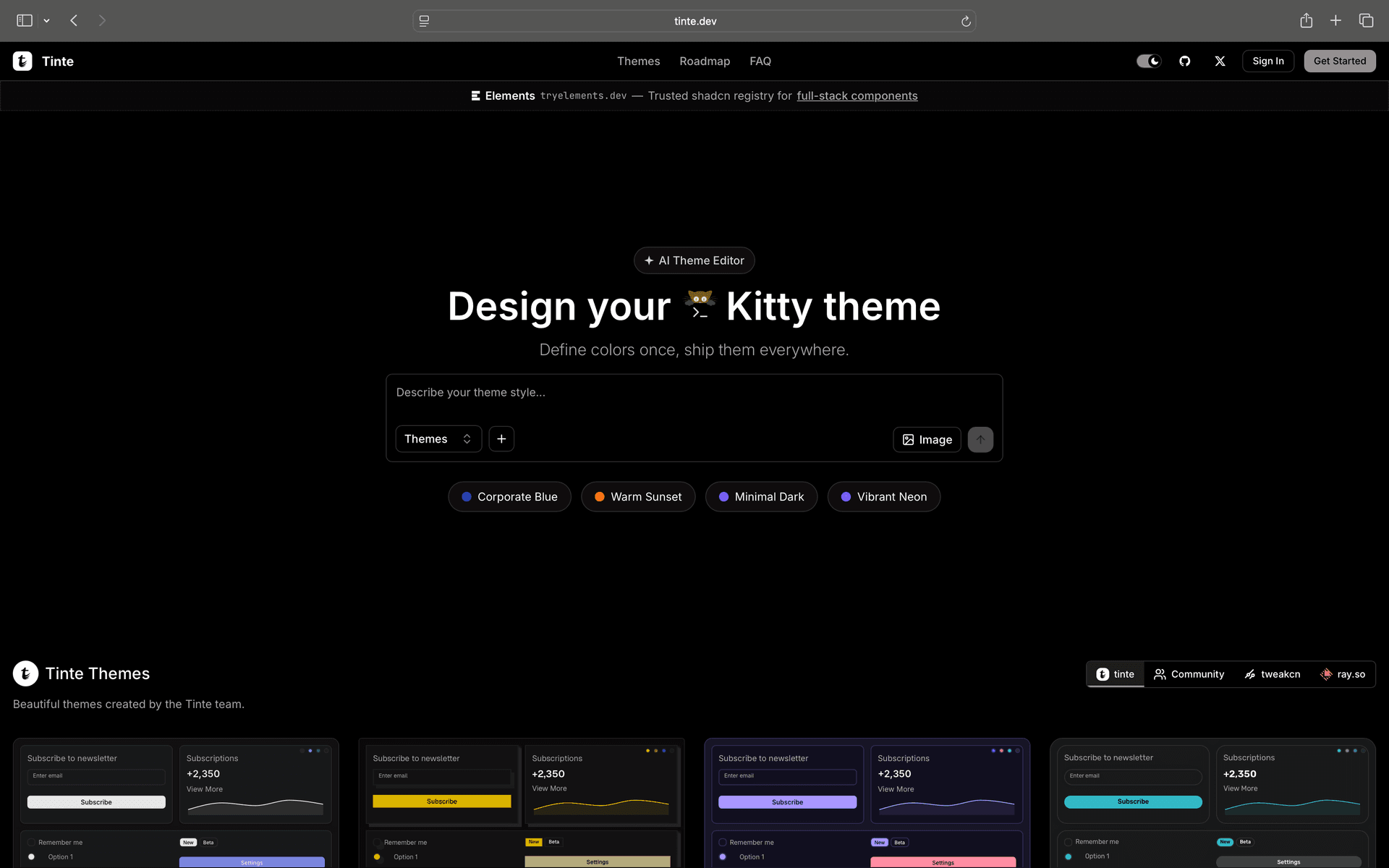 Tinte is an open-source theme generator that lets developers design, visualize, and share color themes instantly for VS Code, Shadcn/UI, and more. The project has grown to 2,000 active users, 5K+ visitors, 468 GitHub stars, and a creative community submitting hundreds of themes—and has even inspired derivative tools like TweakCN.
