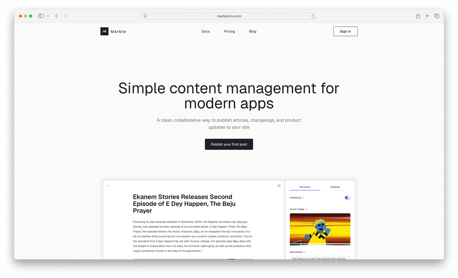 Marble is a simple, flexible headless CMS built to give non-technical users and developers an easy way to manage content without heavy tooling. Since launch, it has grown to 480+ signups, 20 contributors, several sponsor partnerships, early YC-backed adopters, and its first paying users.