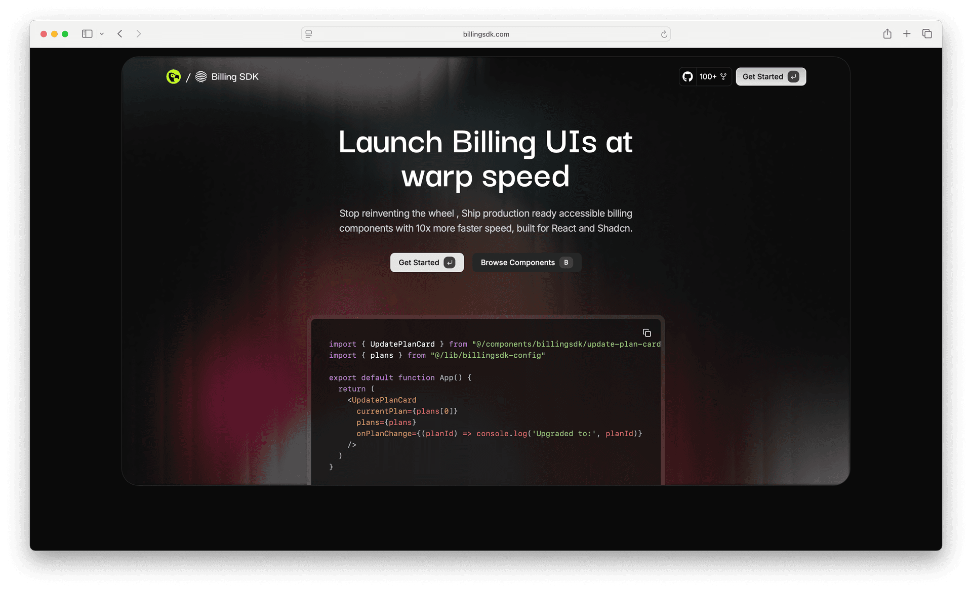 Billing SDK by Dodo Payments is an open-source toolkit that helps SaaS and AI developers ship subscriptions, usage-based billing, and one-time payments in minutes—without backend complexity or compliance headaches. It offers full-stack scaffolding, production-ready UI components, and provider-flexible adapters, and has grown into a global community with thousands of users, 200+ GitHub stars, and hundreds of contributions.