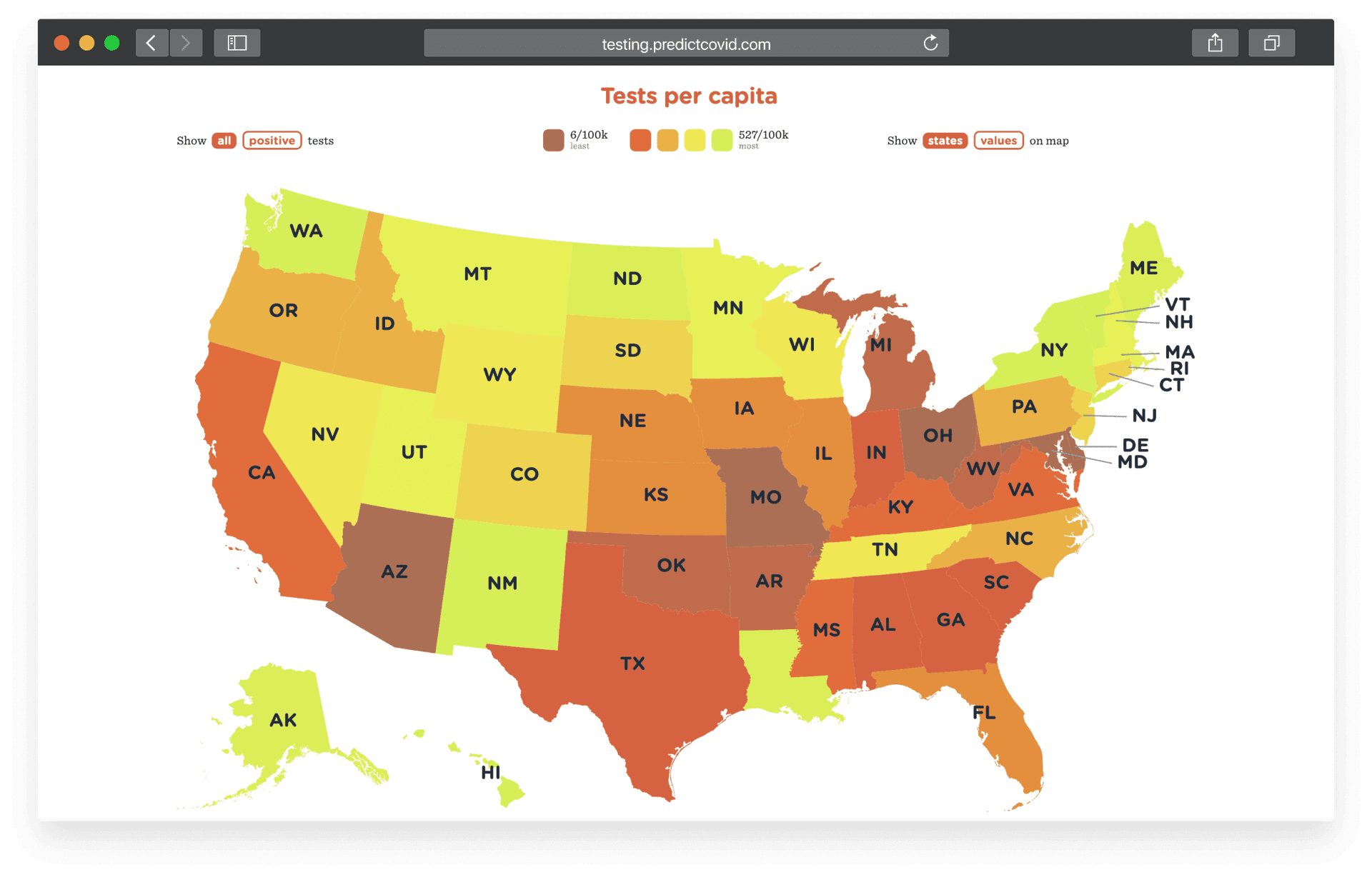 Lachlan Campbell, creator of predictcovid.com mentions on their site: Critical lack of access to COVID-19 testing across the country prevents us from knowing exactly how many people are infected.