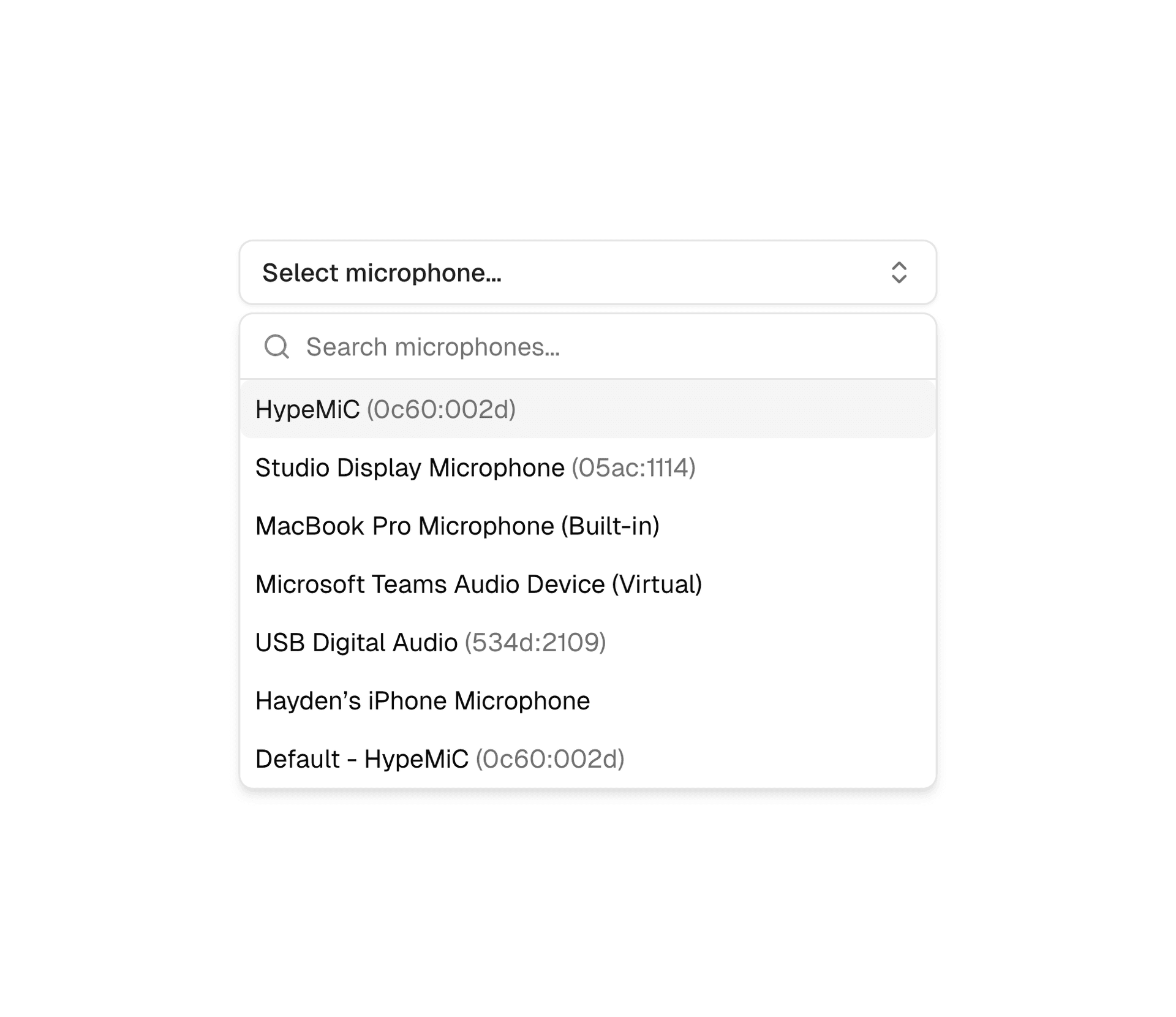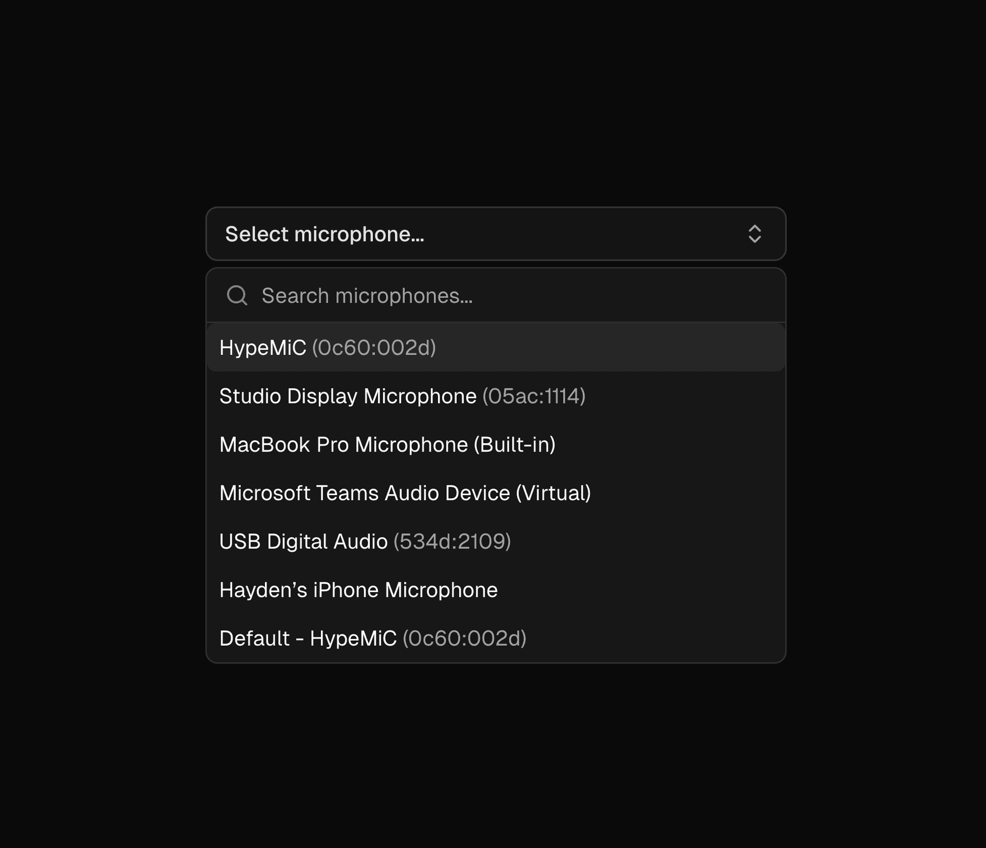 Link to headingMicrophone Selector