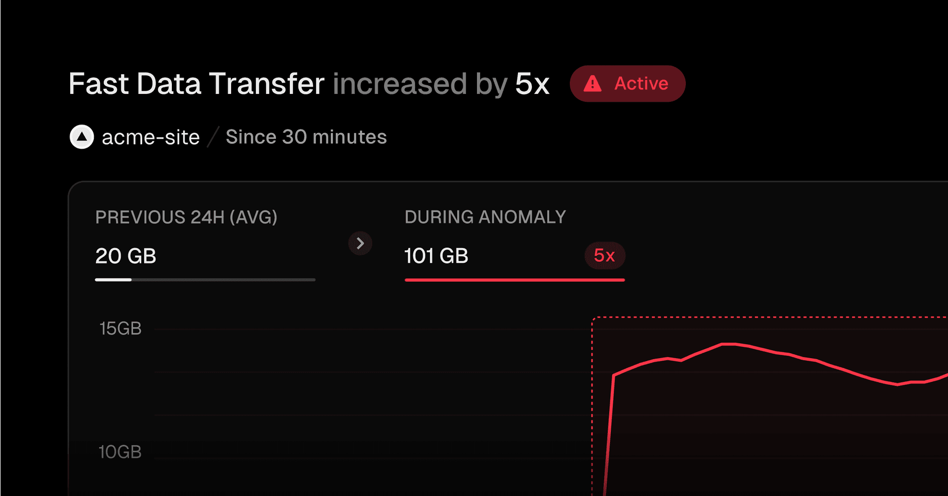 Usage anomalies: unusual patterns in your application metrics, such as edge requests or function duration.