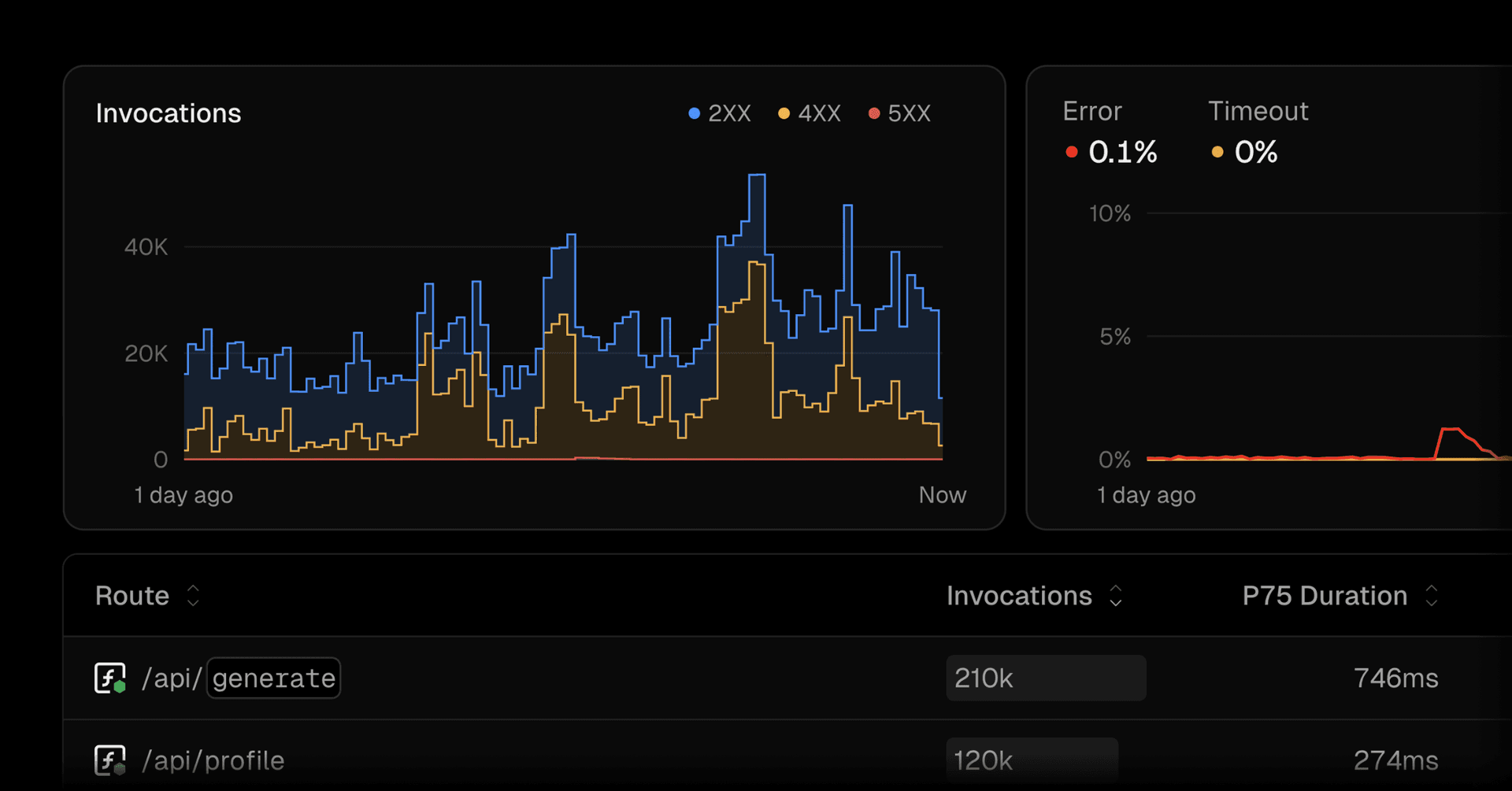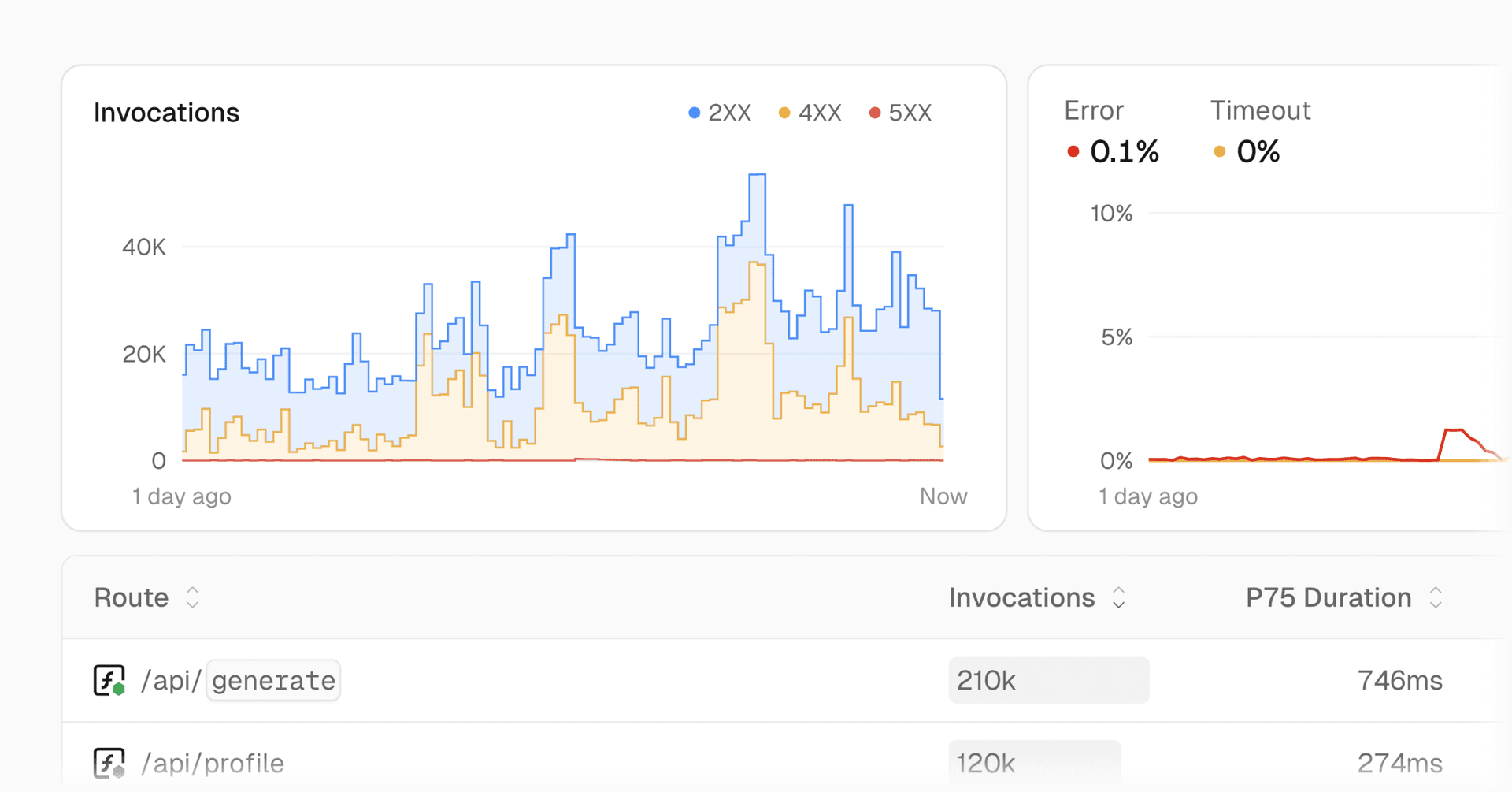 Vercel Functions and external API requests: Monitor function behavior and external requests, including invocations, durations, and error rates