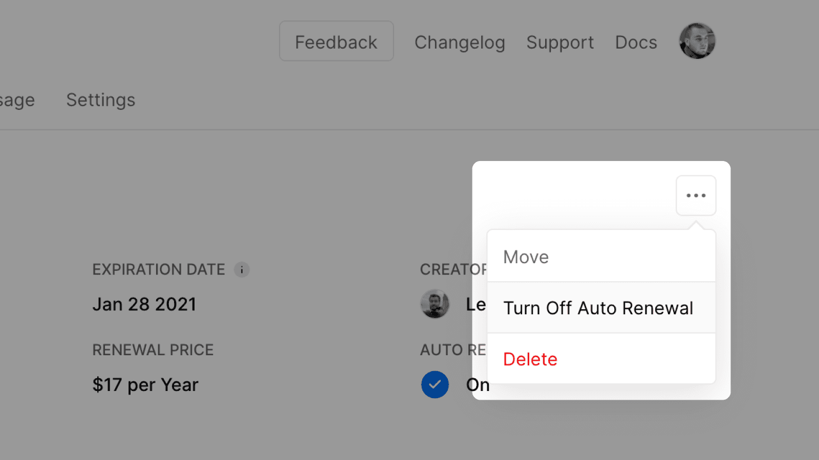 Previously, the only way to prevent a Domain from being renewed again (in the case that you don't want to continue using it, for example) was contacting our Support Team, who disabled auto renewal for you.