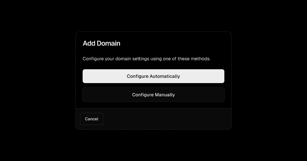 We're also implementing Domain Connect as a DNS provider, enabling external services to configure Vercel Domains just as easily.