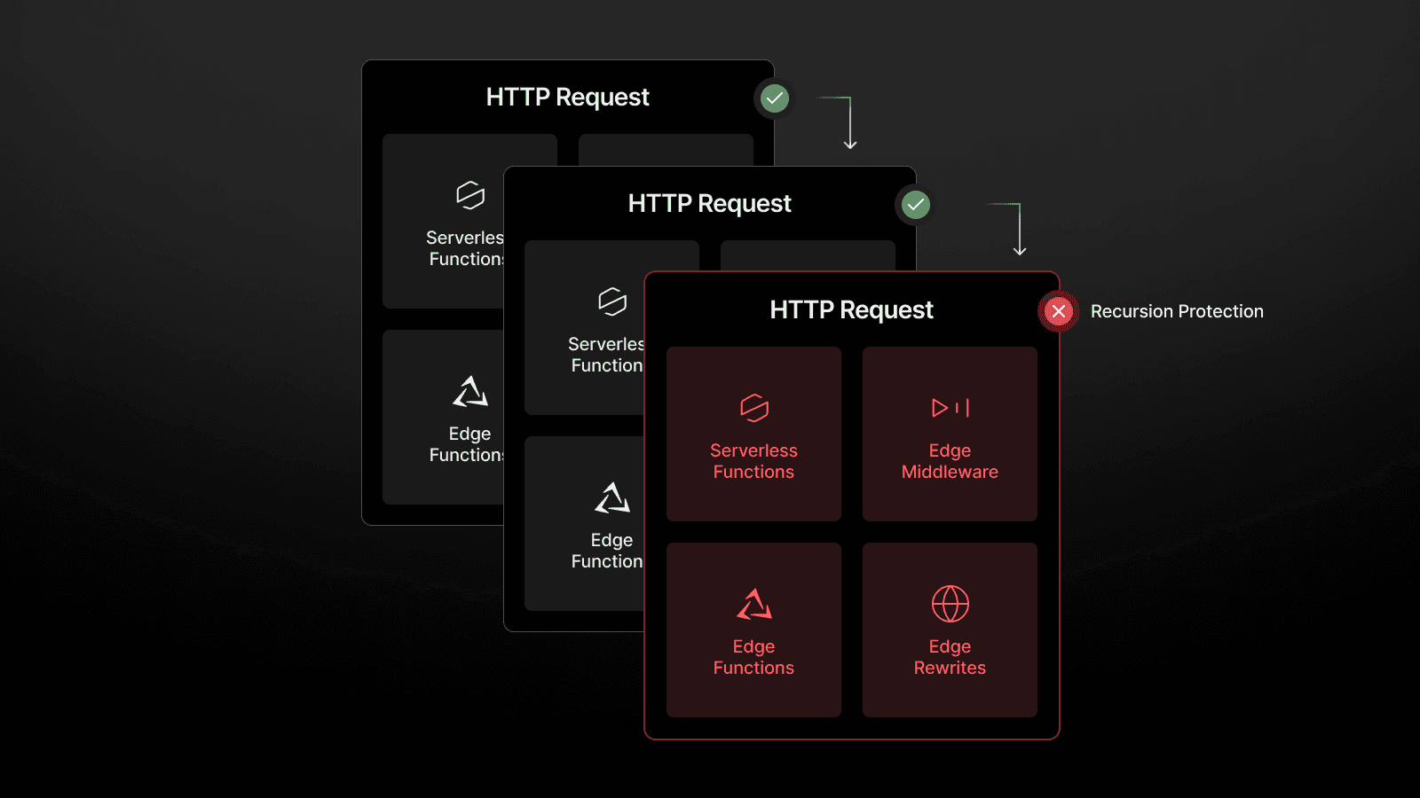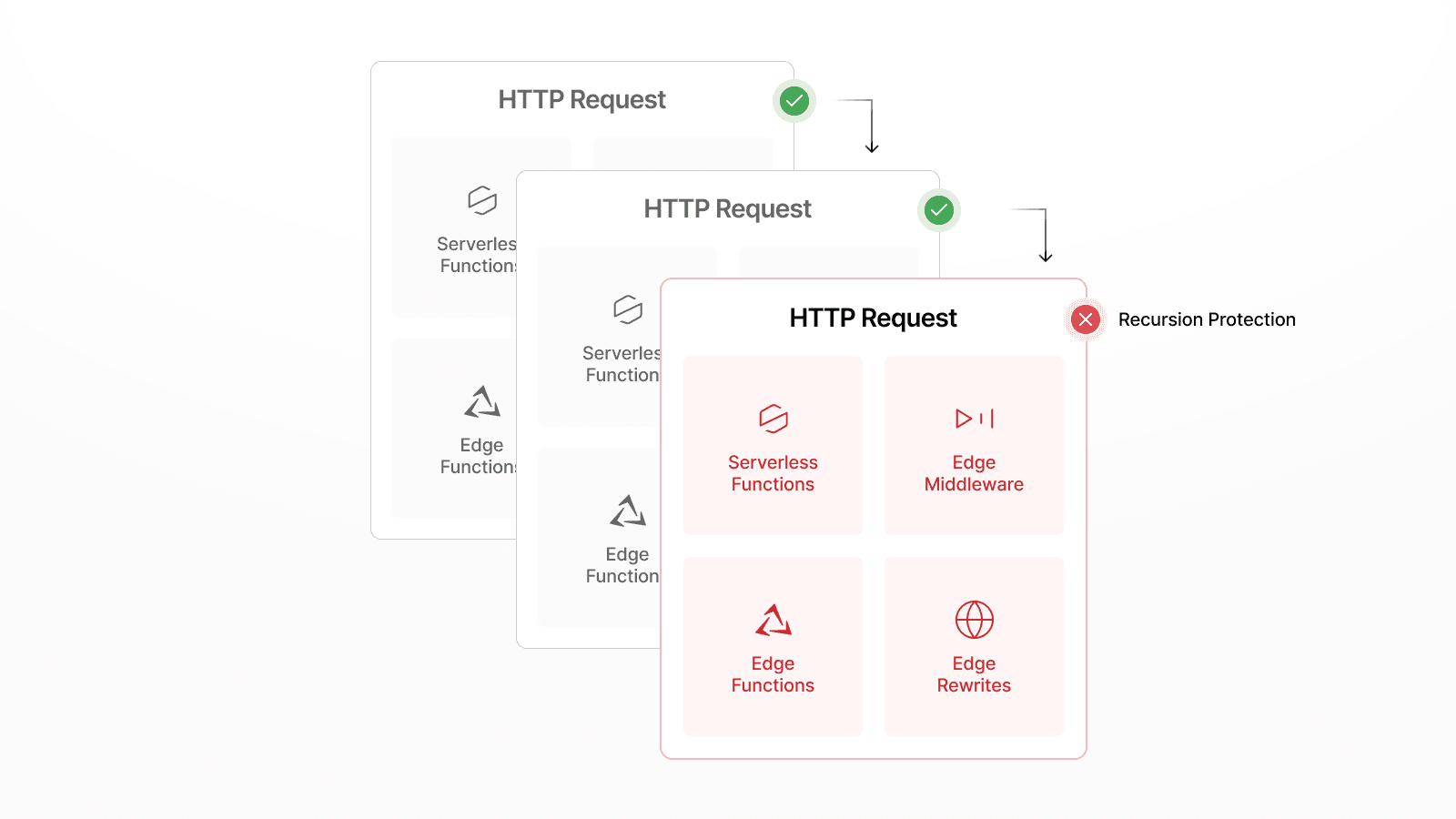 Recursion protection is available free on all plans. It does not require any code changes in your application, but does require a new deployment. Outbound requests now include the x-vercel-id