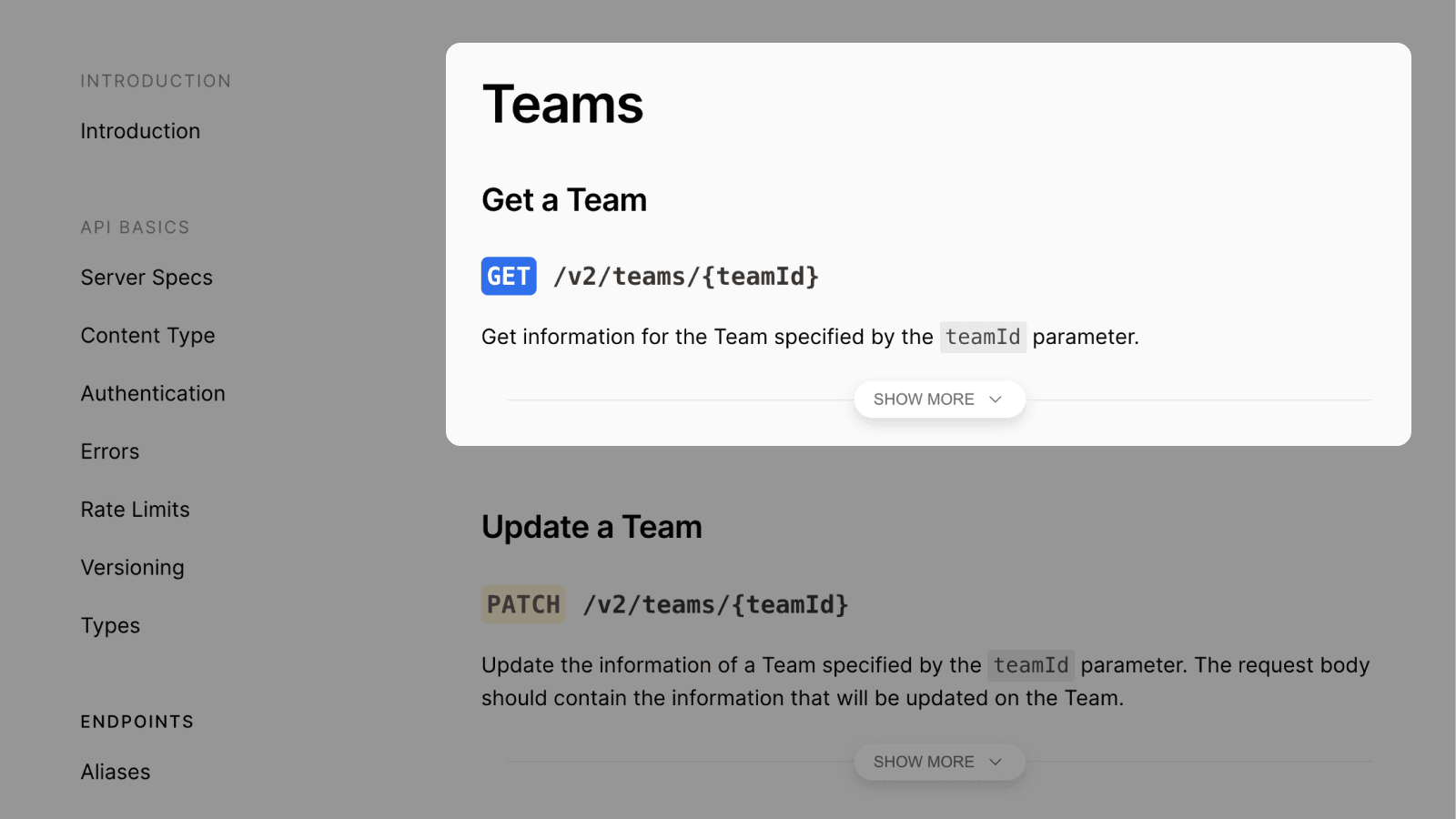Developers can use our REST API to extend the Vercel platform and programmatically augment their workflows. After every change to our API repository, a new version of the documentation is automatically generated. This includes all API endpoints and the correct fields and types used. Starting today, more endpoints are listed and all parameters are now documented.