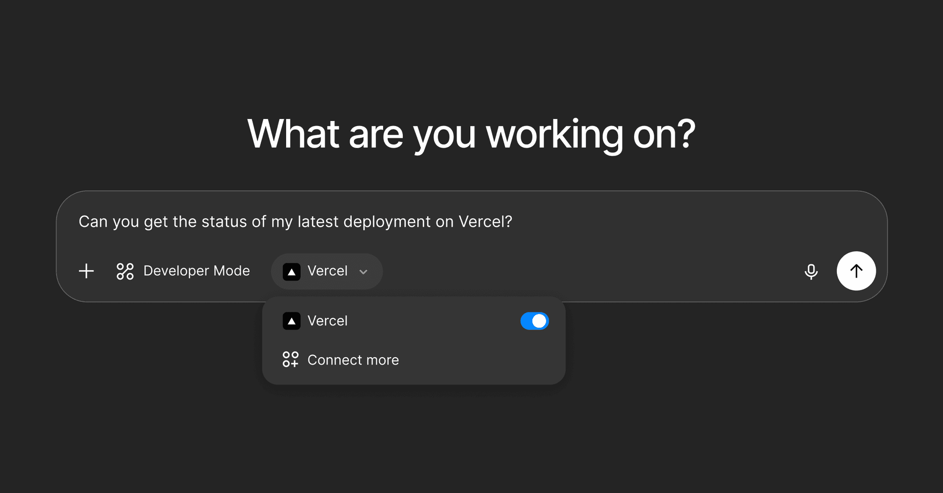 You should now be able to select Vercel as a connector in Developer Mode chats.
