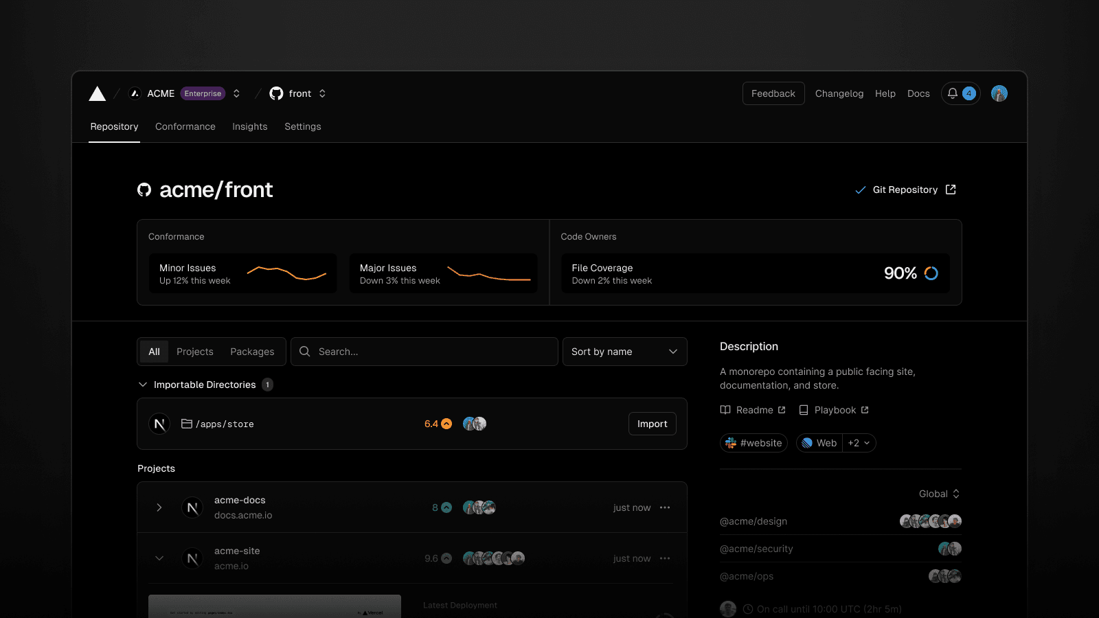 Today, we're releasing new features to Vercel's Developer Experience Platform to help Enterprise teams ship higher quality code, faster—even as teams and codebases scale: