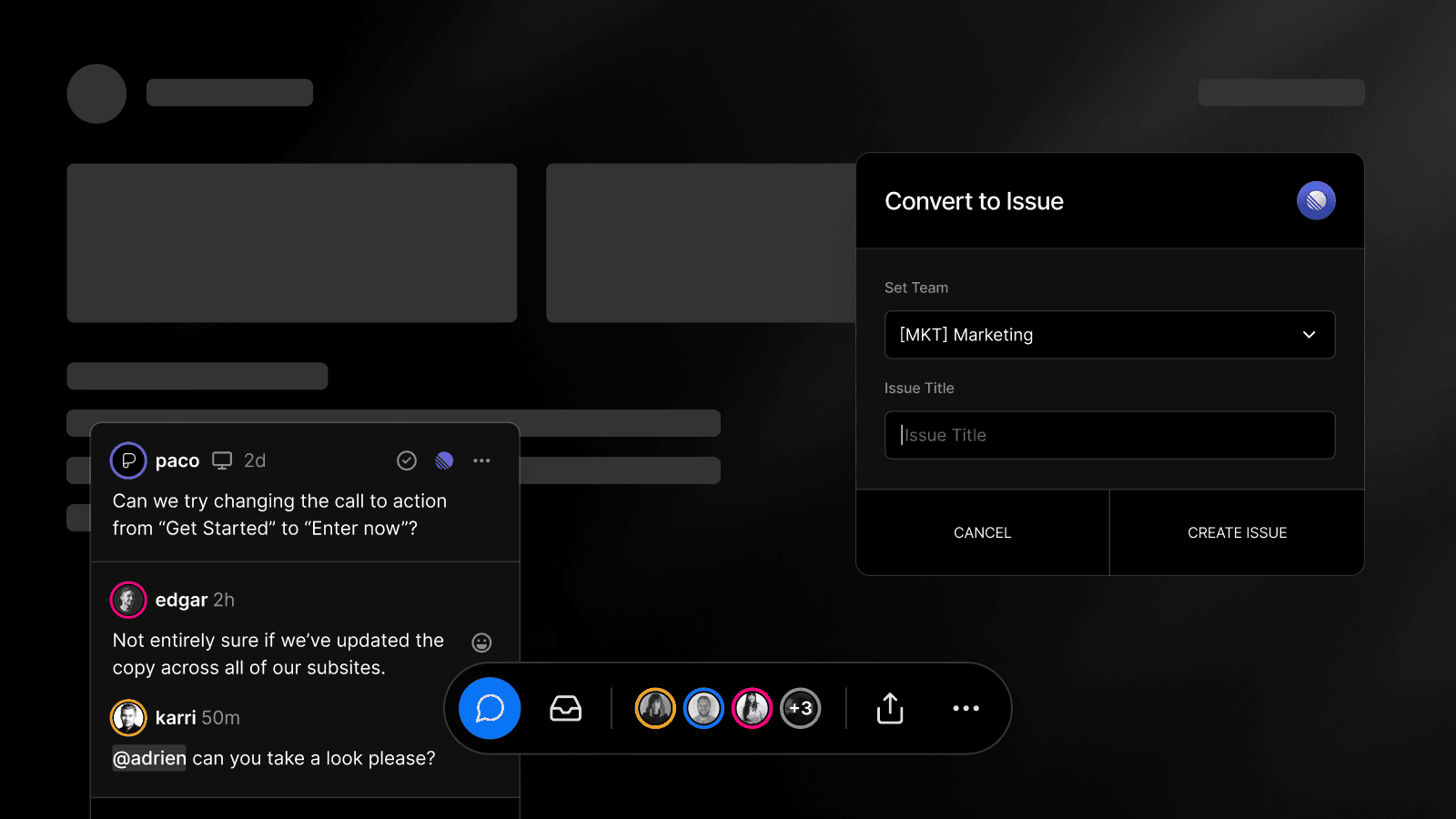 Comments on Vercel Preview Deployments can now be converted to Linear issues directly from the comment. This makes it easy to take action on feedback in the workflows your team is already using.