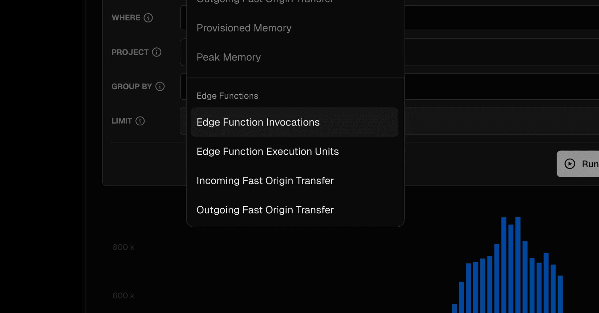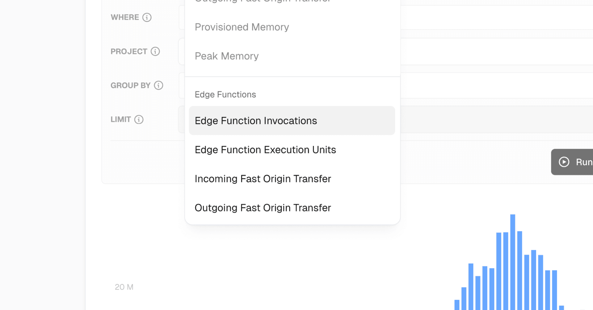 Monitoring now includes three new metrics for Edge Functions to provide a comprehensive view of your Edge Function activity and performance: