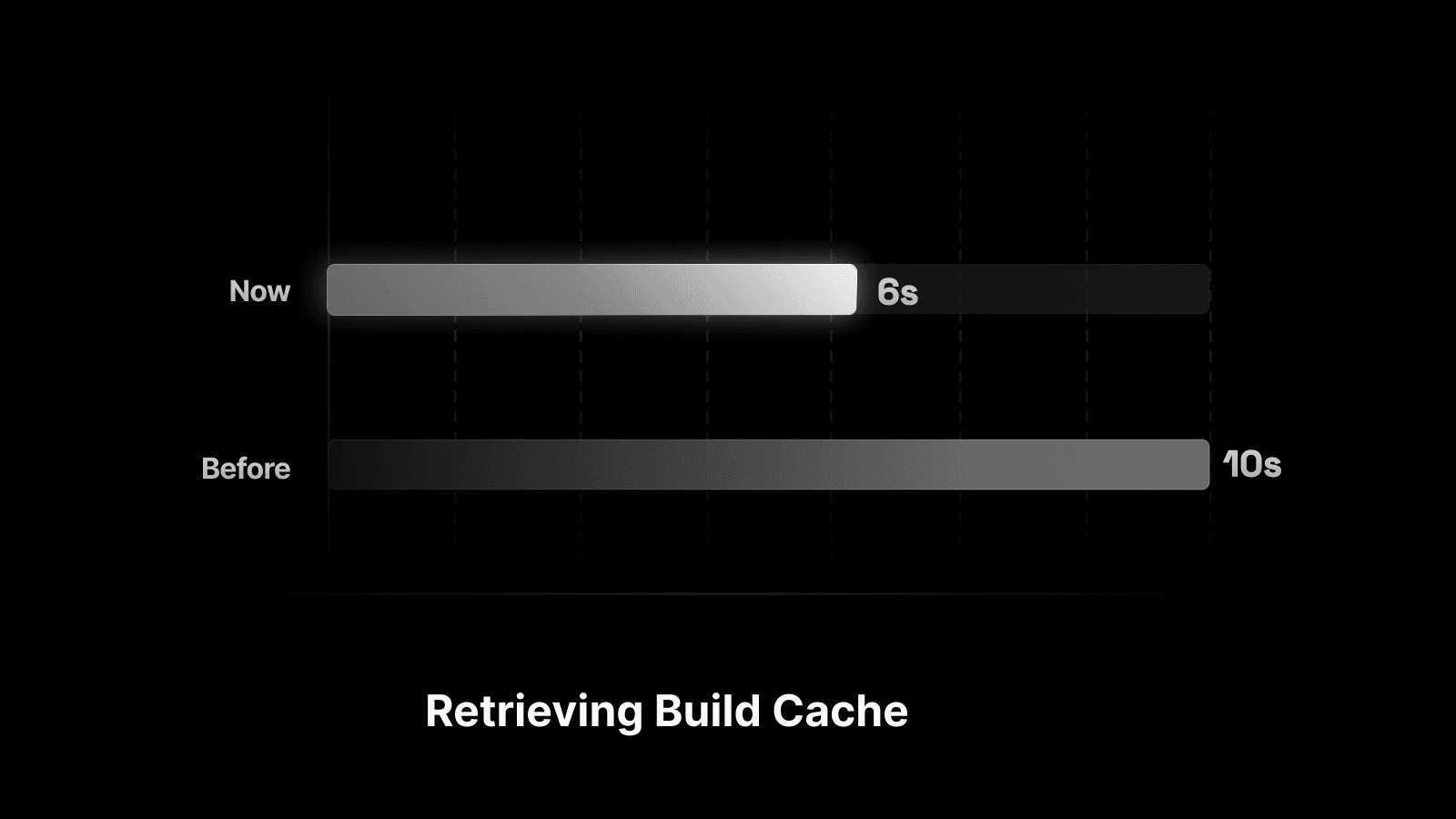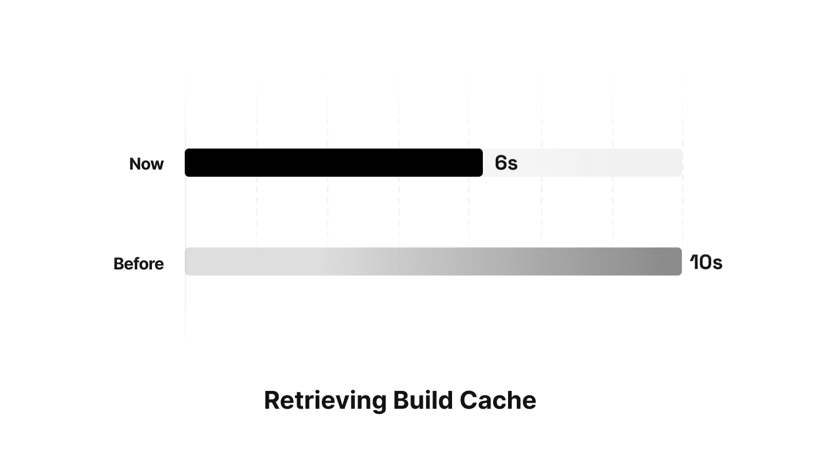 By optimizing how we retrieve the build cache, deployments are 15s faster for p90 (build times for 90% of users, filtering out the slowest 10% outliers).