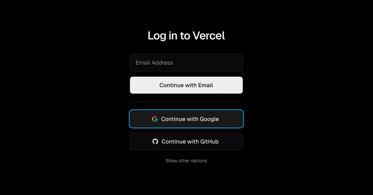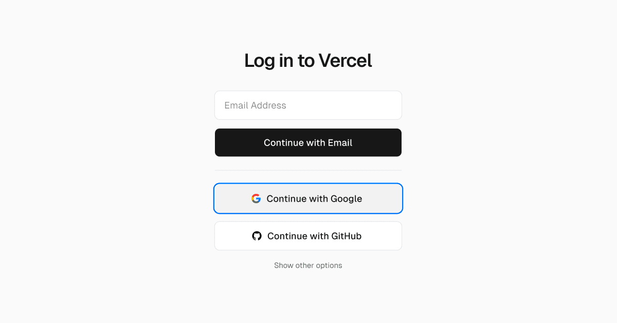 If your existing Vercel account's email matches your Google email, you can use the Google button from the login screen and your accounts will be automatically linked.