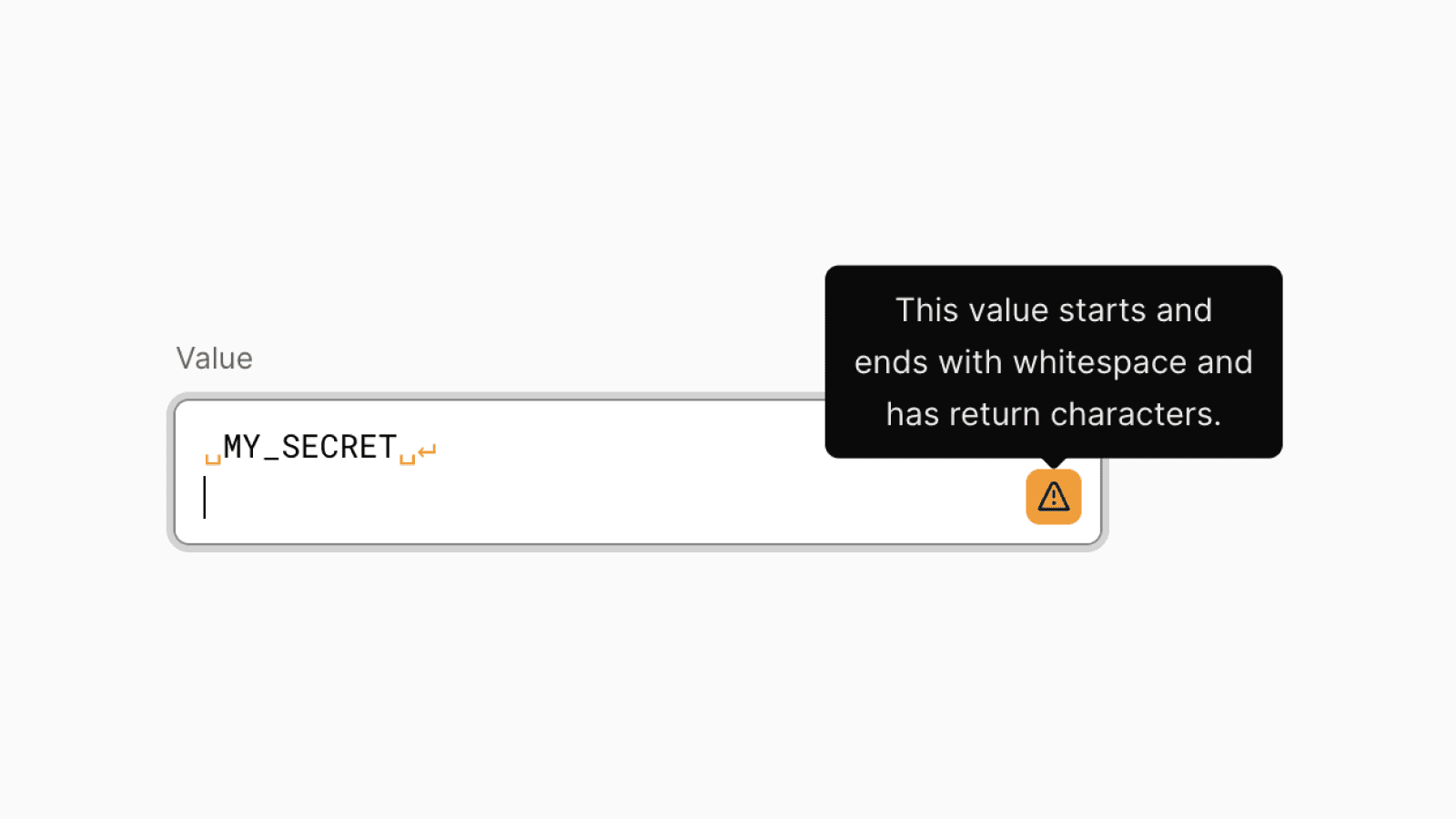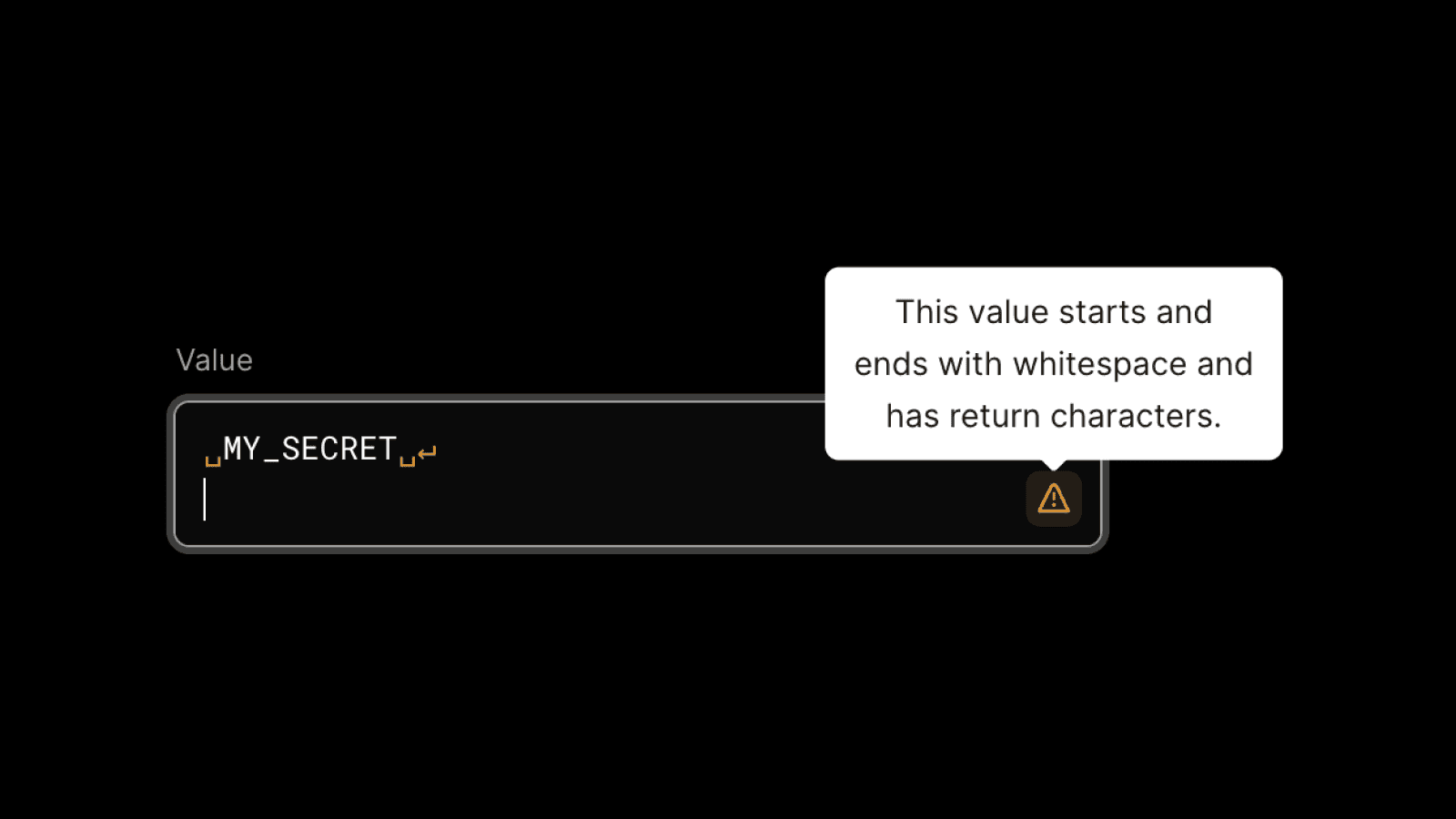 When creating and editing Environment Variables on Vercel, you can now see hints that will warn you of potential typos in the name. This includes issues like: