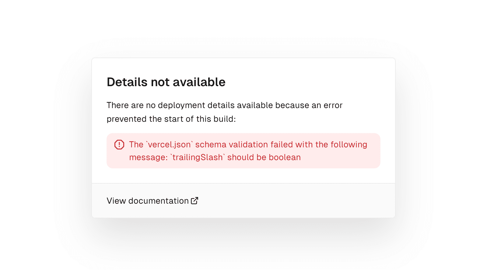 Failed or canceled builds now have better feedback clearly displayed on the Vercel dashboard in the deployment details page.