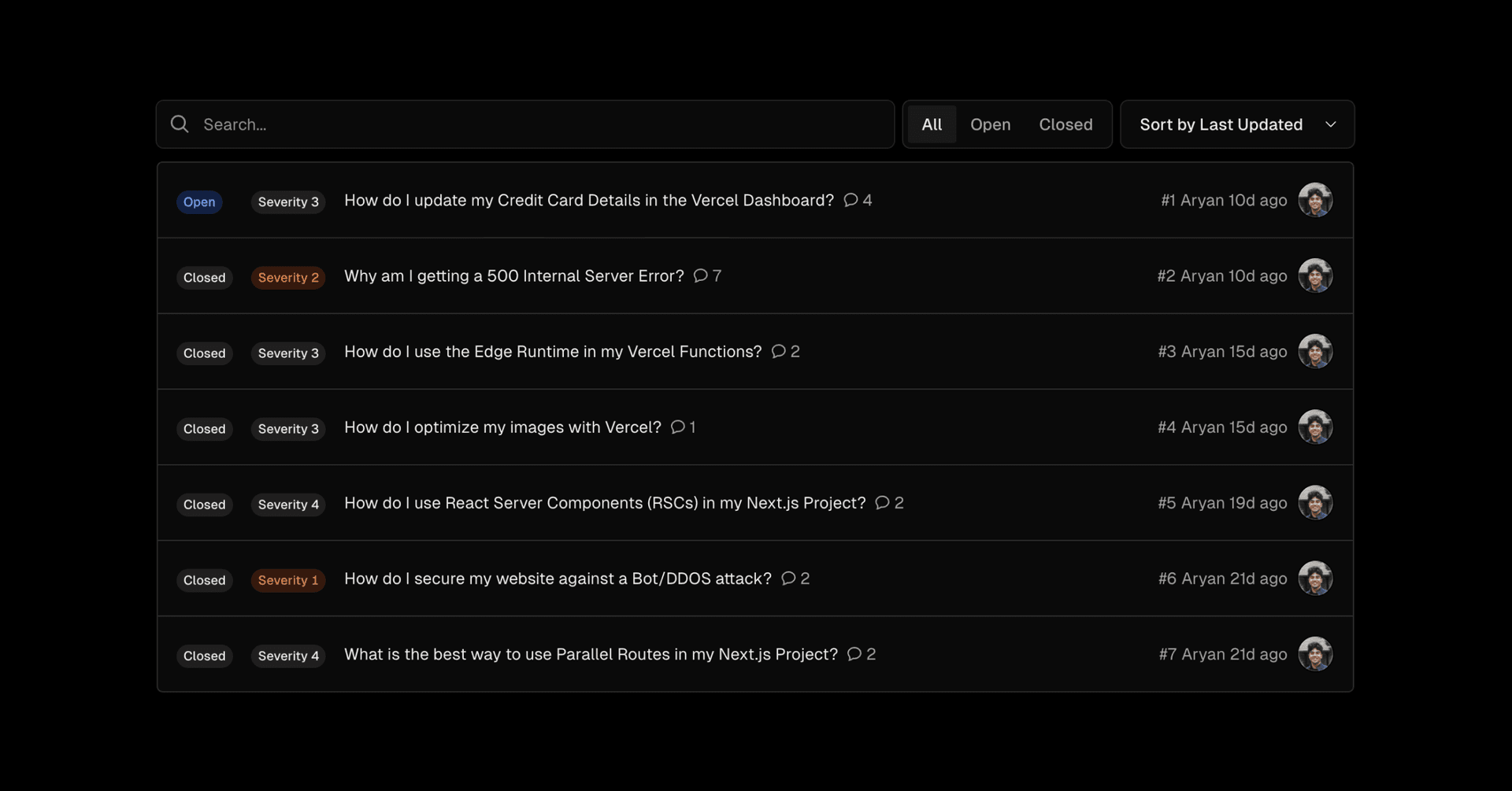 The Support Center now has an improved design to make it easier to understand the state of your support cases. You can now find cases by: