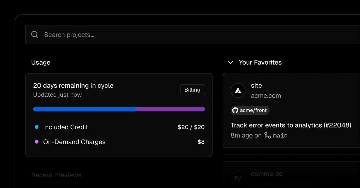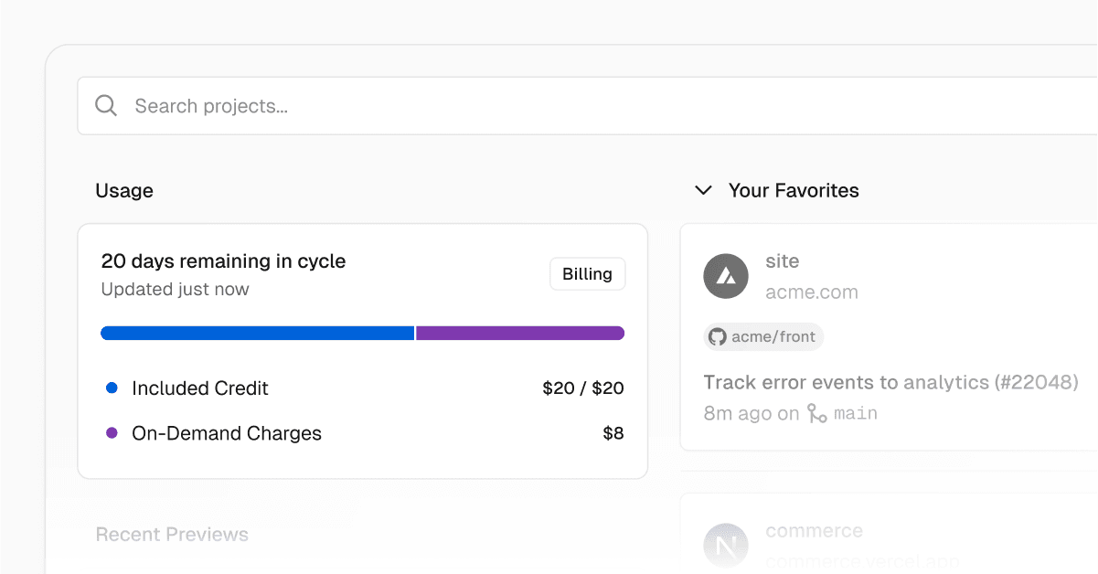 The Pro plan now includes $20 in monthly usage credit instead of fixed allocations across metrics like data transfer, compute, caching, and more. This plan update replaces static usage buckets with a more flexible system that adapts to your workload.