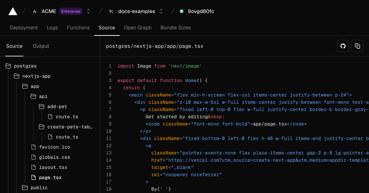 The UI for inspecting your deployment source and build output files is improved. Use the deployment Source tab to see what goes into a deployment and what gets created from the build process.