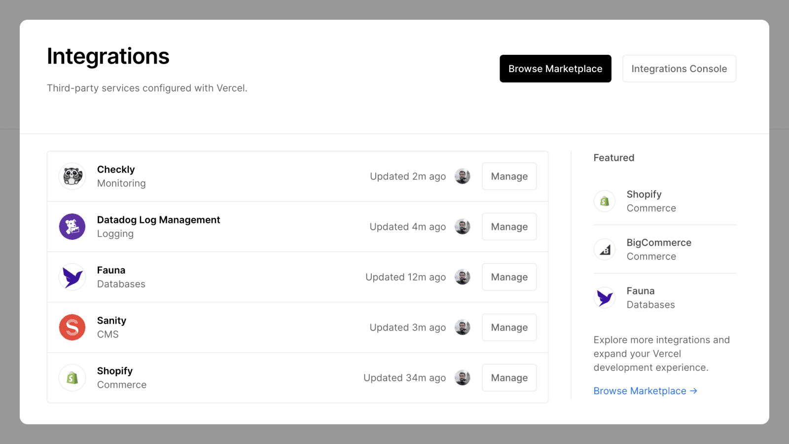 Following our launch of Vercel's new Integration Marketplace, we're now making it easier to manage Integrations on the dashboard.