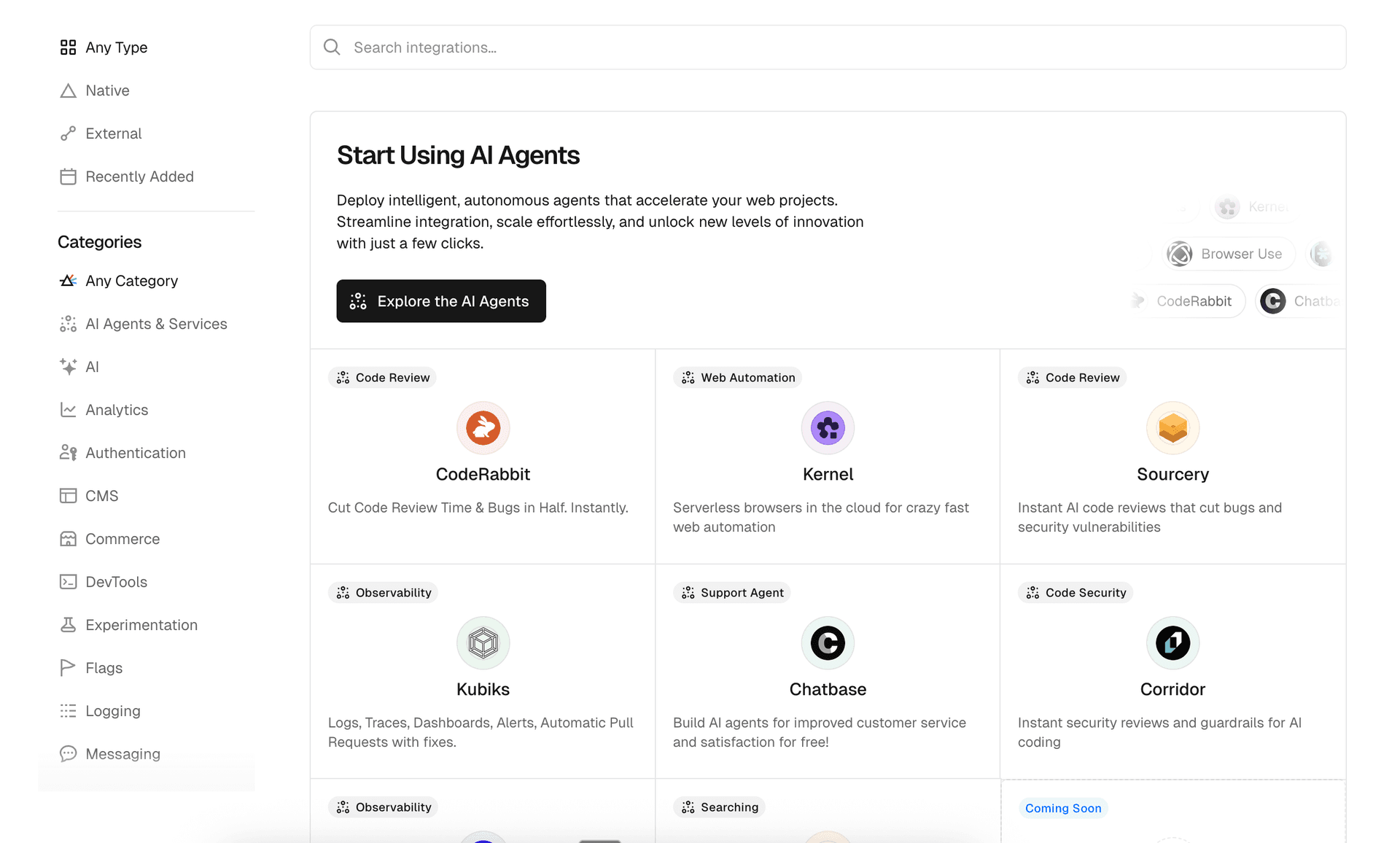 The Vercel Marketplace now includes a dedicated AI Agents & Services category, making it easier for developers to integrate AI-powered automation, observability, and infrastructure directly into their projects.