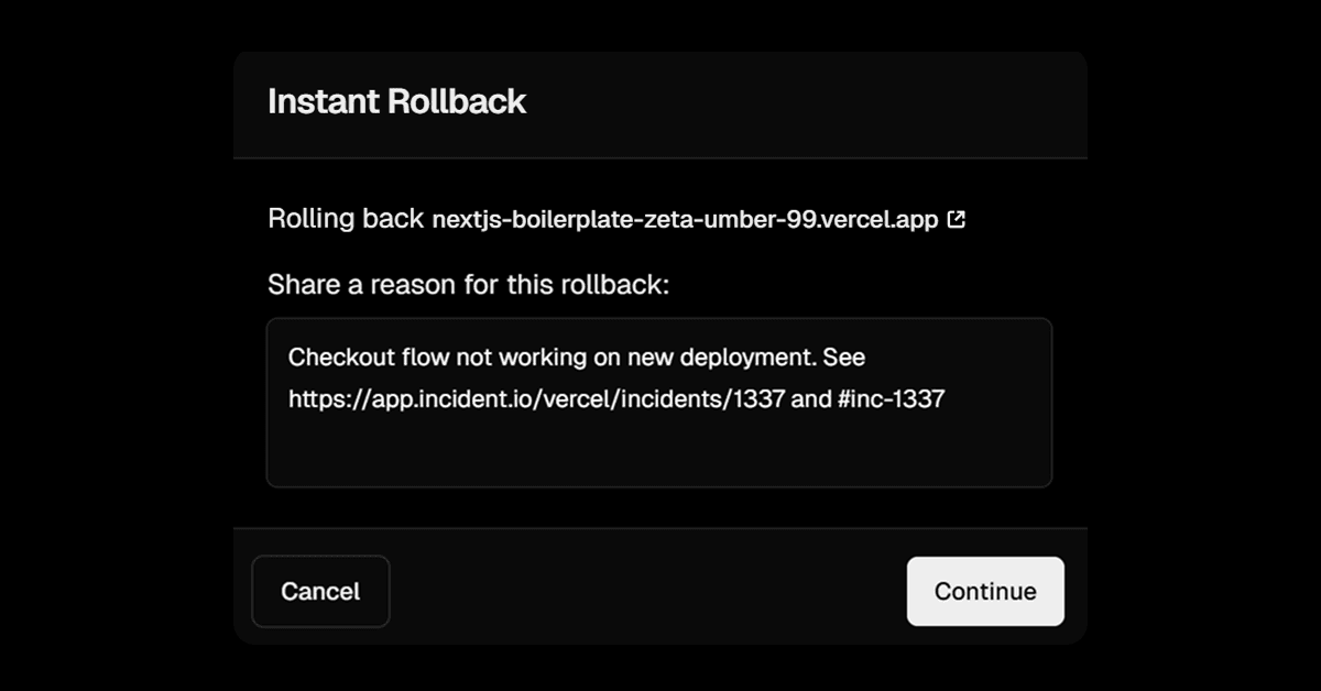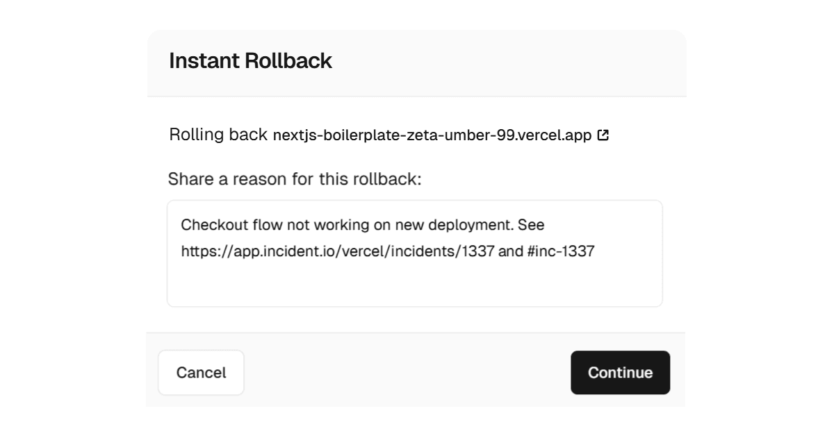 This message is visible to your team in the project overview and can include links or notes explaining the rollback. You can also update it at any time.
