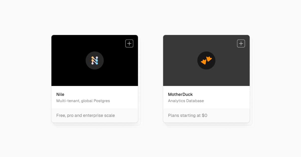 Nile and MotherDuck are now available as first-party integrations on the Vercel Marketplace.