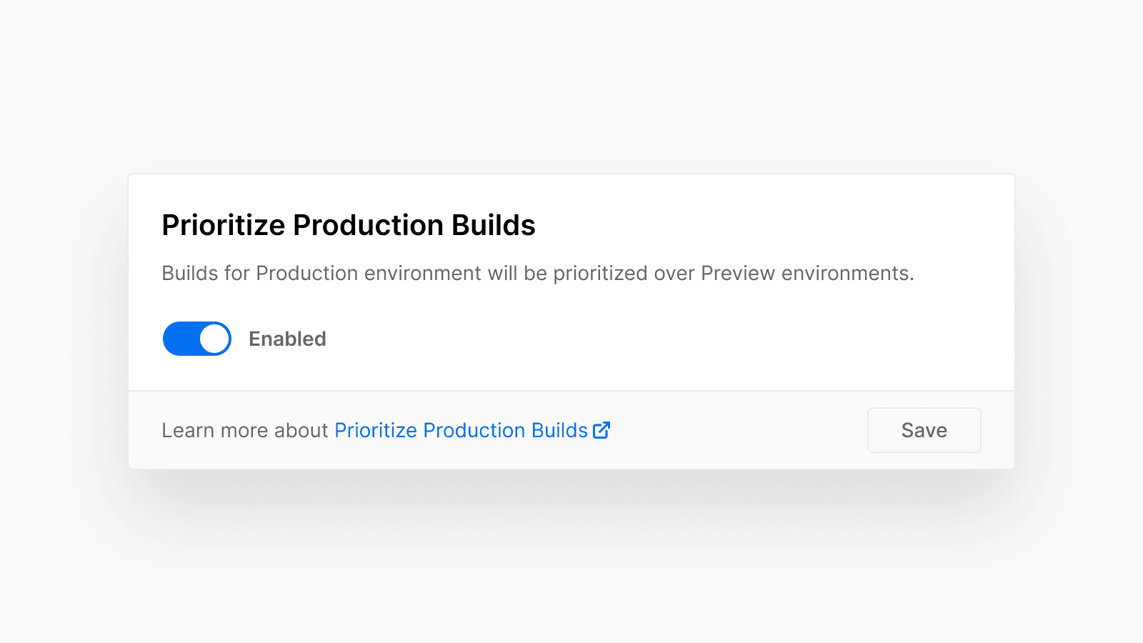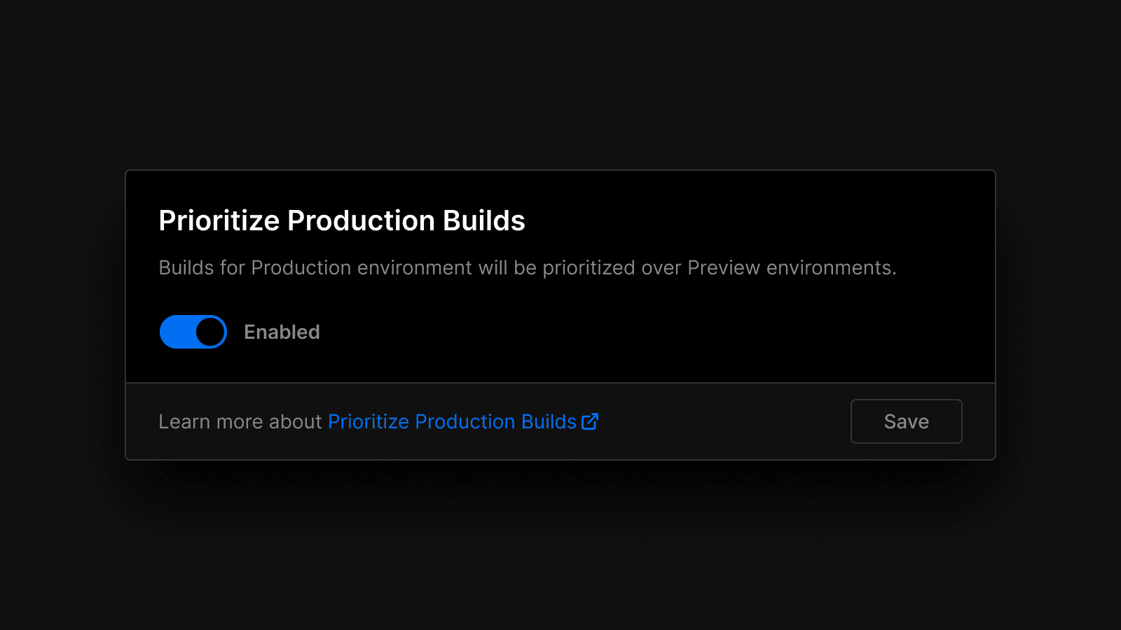 With this setting configured, any Production Deployment changes will skip the line of queued Preview Deployments and go to the front of the queue.