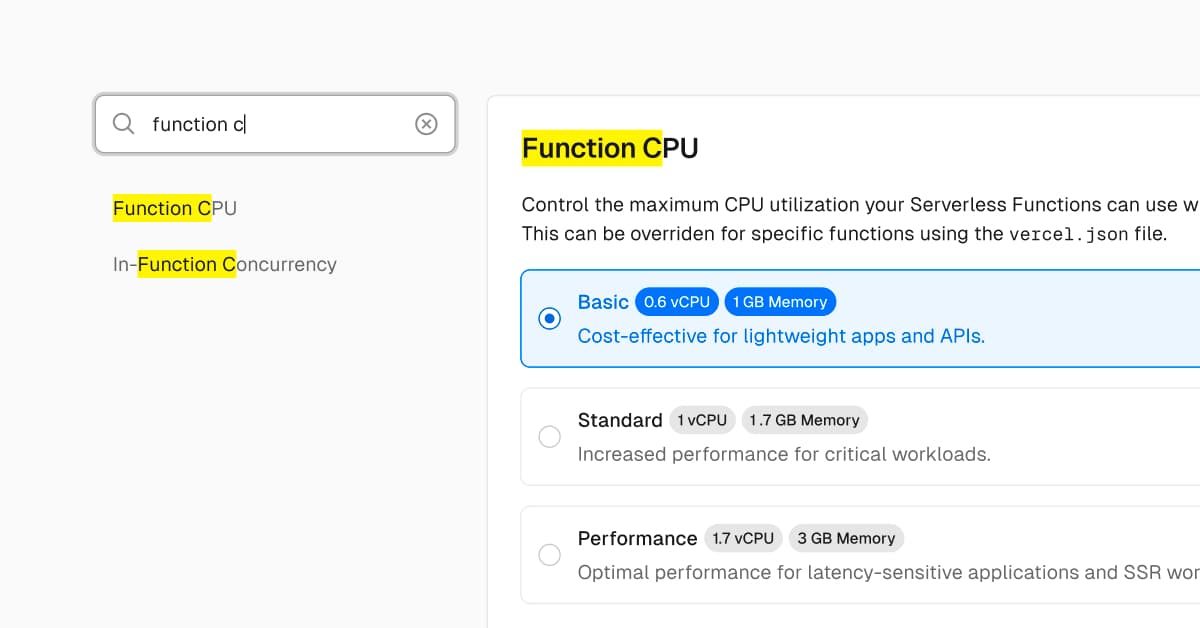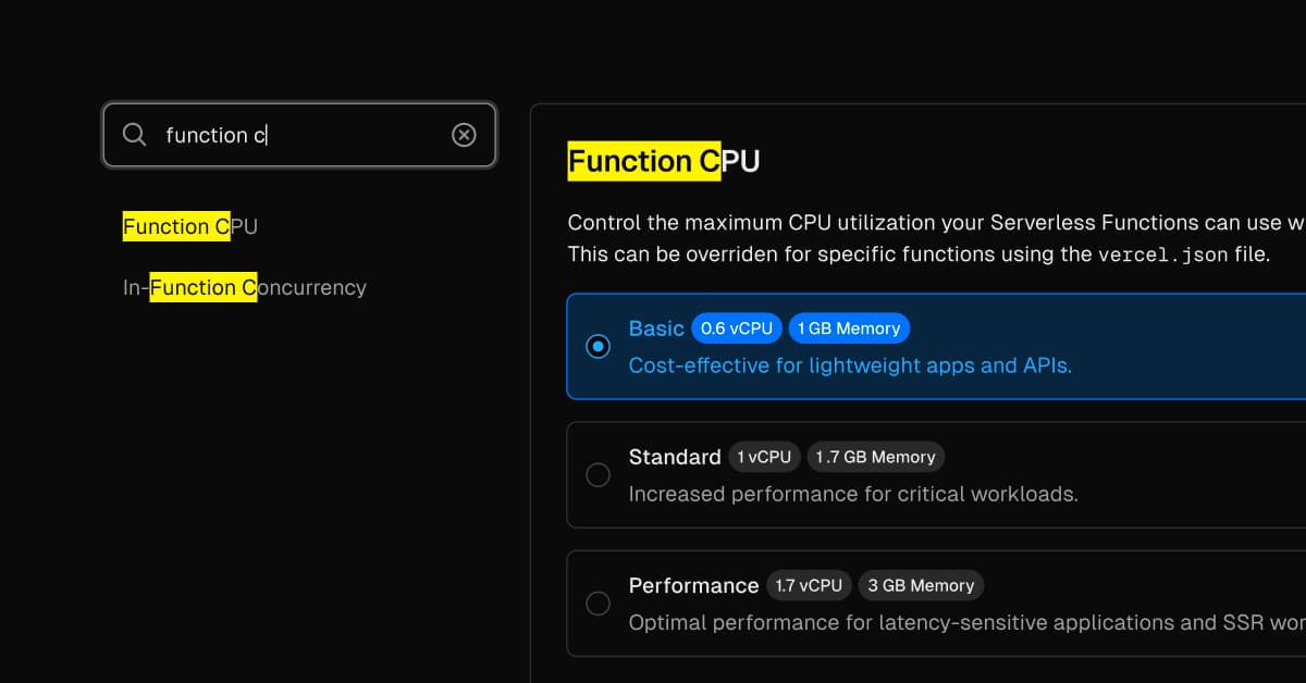 You can now search within project settings in the Vercel Dashboard, making it easier to quickly find a specific setting.