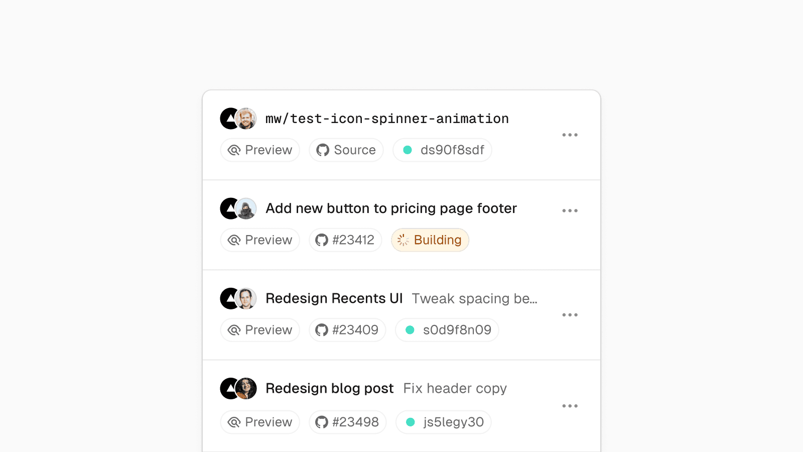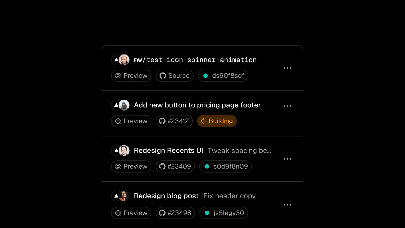 Preview deployments you have recently viewed or deployed are now accessible from the Recent Previews column on your dashboard.
