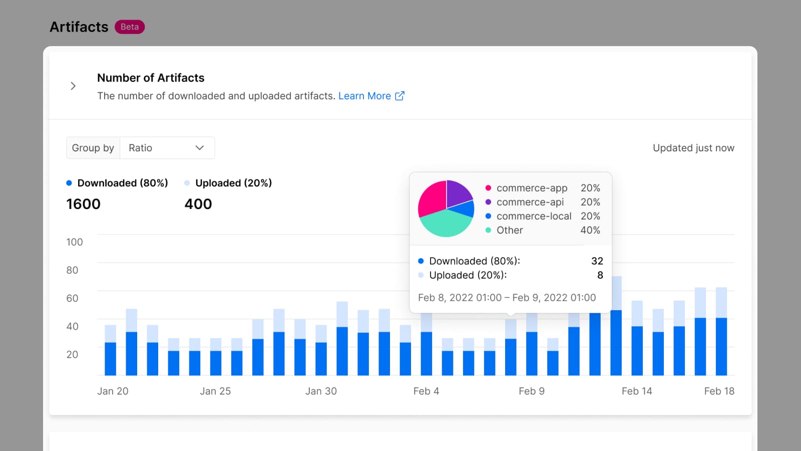 Total number of artifacts uploaded or downloaded