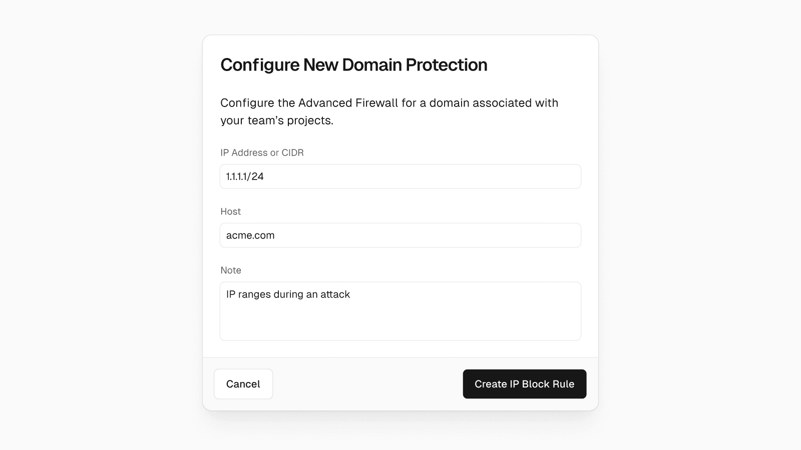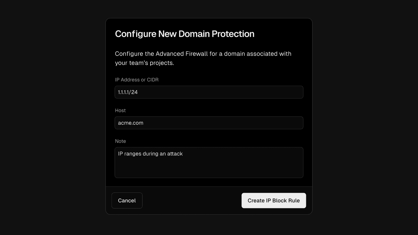 Vercel Firewall protects your application from DDoS attacks and unauthorized access.