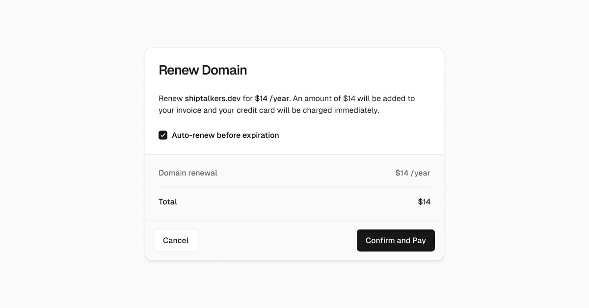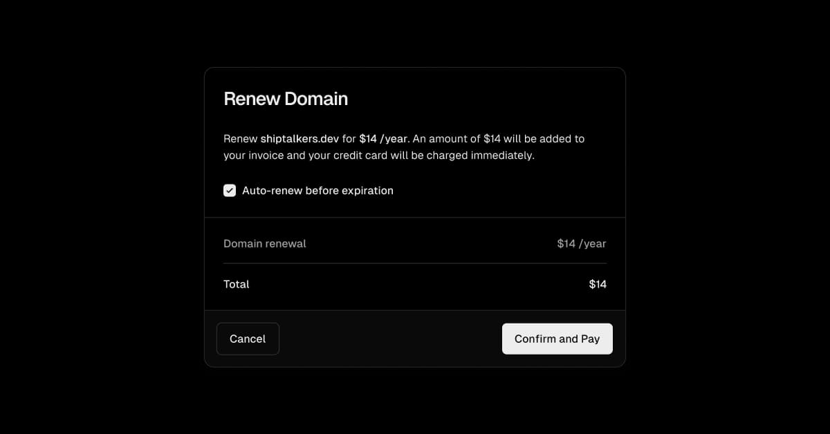 Self-serve domain renewals and redemptions are now available in the Vercel dashboard.