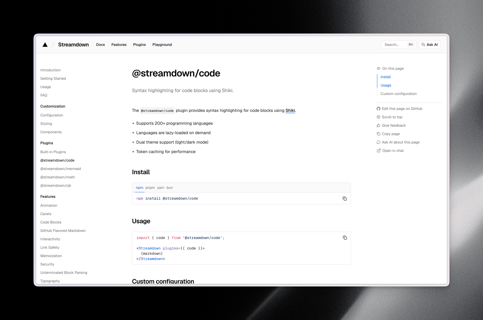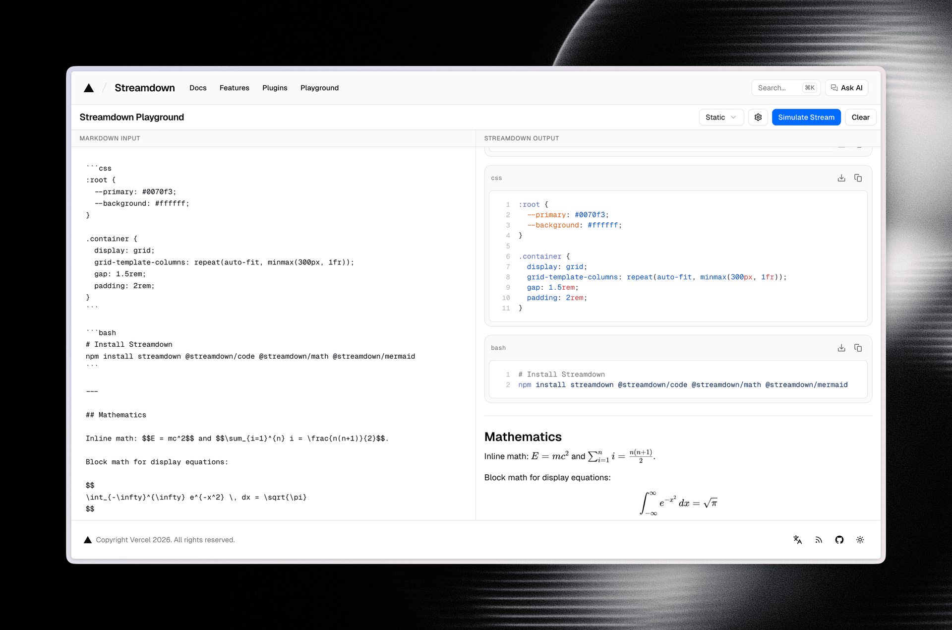 This release also resolves issues with nested HTML block parsing, custom tag handling, Mermaid diagram artifacts, and Shiki syntax engine inconsistencies. Streamdown 2.3 ships with a fully cleared bug backlog.